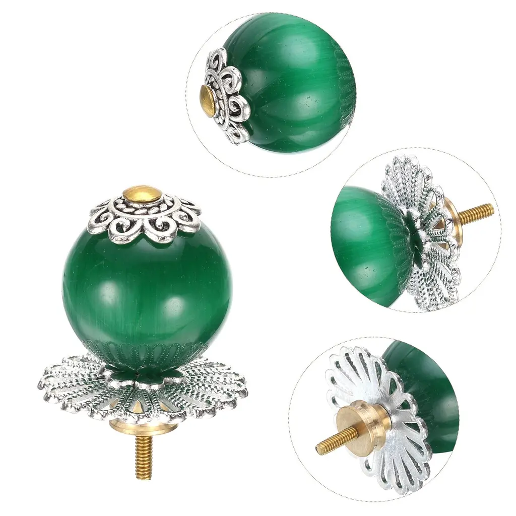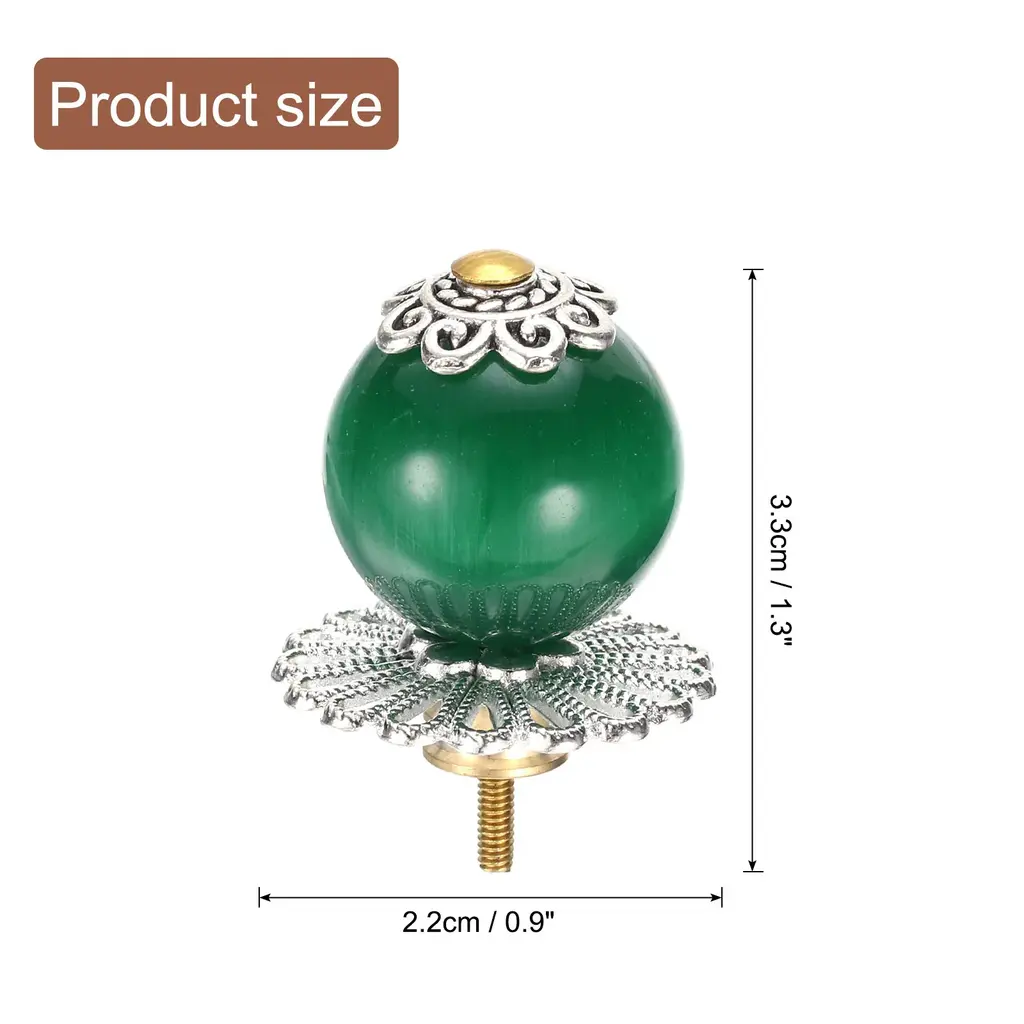 Description:Durable Material: These teapot cover knobs are made from plastic, zinc alloy, and copper materials, sturdy, heat-resistant, and lightweight, which can withstand the heat from teapots.Simple and Convenient: The knobs feature a simple design that allows for easy gripping and operation, which are designed to be user-friendly, ensuring a comfortable grip and smooth operation when opening the teapot lid, and can serve as a decorative accent.Simple Installation: To install, align the knob with the lid of the teapot or kettle, ensuring it is properly positioned, and then screw it in place for a secure fit.Versatile Application: Great for use with various types of teapots and kettles, these knobs are suitable for both home and commercial settings, such as tea ceremonies, restaurants, and hotels.Specification:Material: Plastic, Zinc Alloy, CopperColor: Green/SilverTotal Size: 3.3 x 2.2 cm/1.3 x 0.9 inch (L*W)Package Included: 1 pc x Teapot Button Lid Knobs