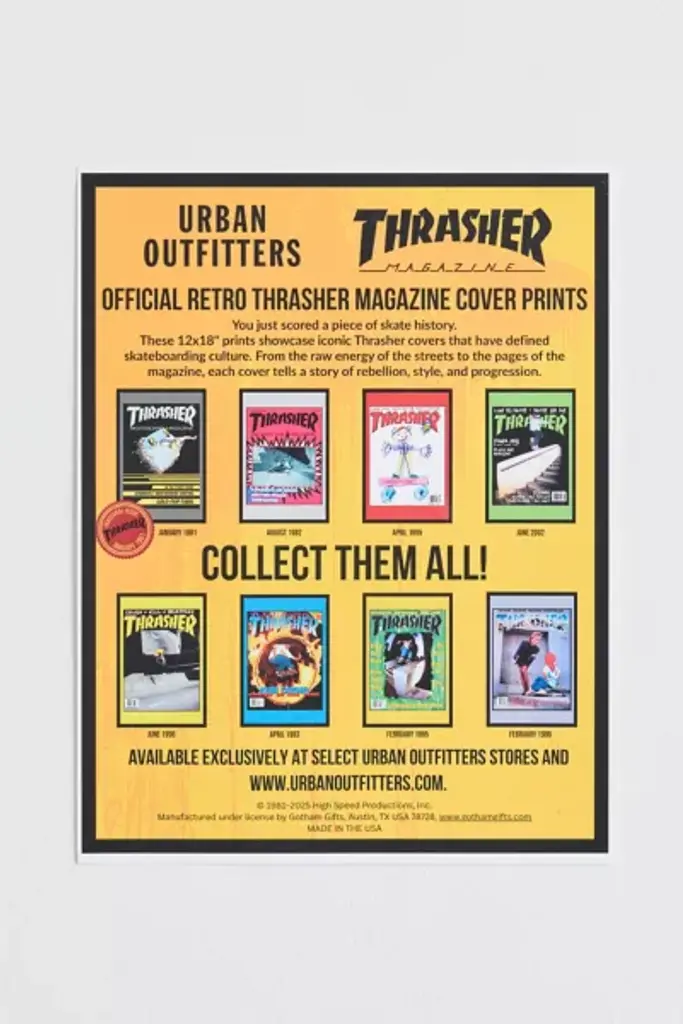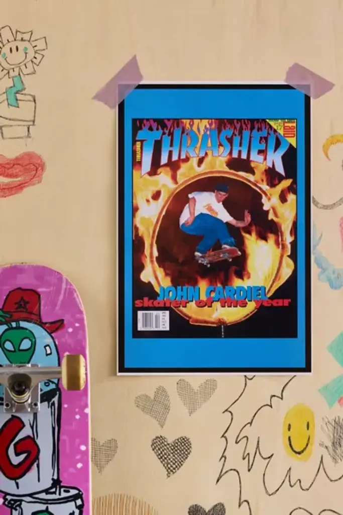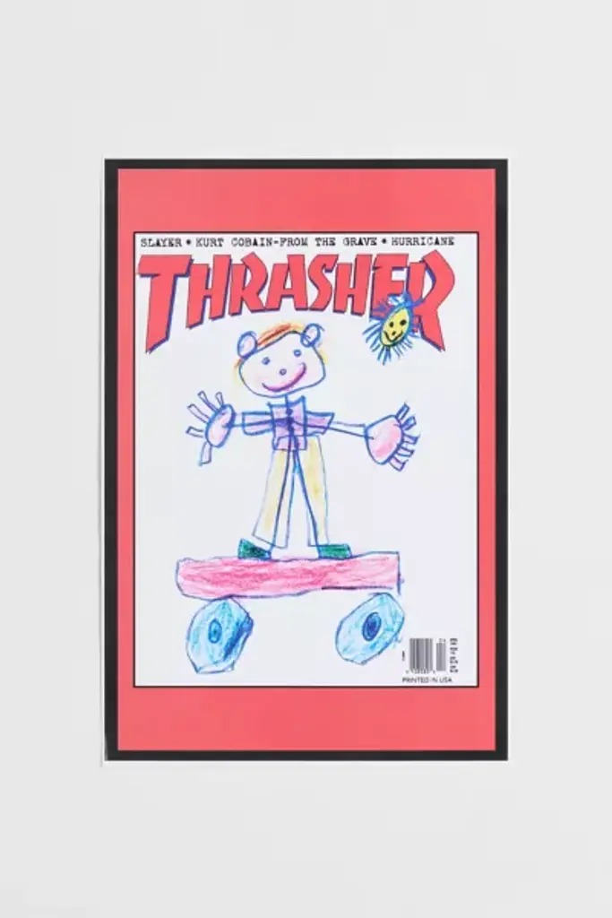 The April 1995 cover of the skateboarding magazine, _Thrasher_ featuring reader submitted artwork for Mail Drop. This frameless poster is printed on premium, glossy paper. Available exclusively at Urban Outfitters. **Features** \- Thrasher Cover April 1995 Poster \- Artwork by Sean McKnight, age 6 \- Printed on high-quality, glossy paper \- Frameless Thrasher magazine cover poster - pair it with your favorite poster hangers and frames \- Easy to hang - perfect for decorating your office or refreshing your dorm room décor \- Perfect for gifting \- UO exclusive **Content + Care** \- 100% Eco-paper \- Wipe clean \- Made in the USA **Size** \- Dimensions: 12"l x 18"w