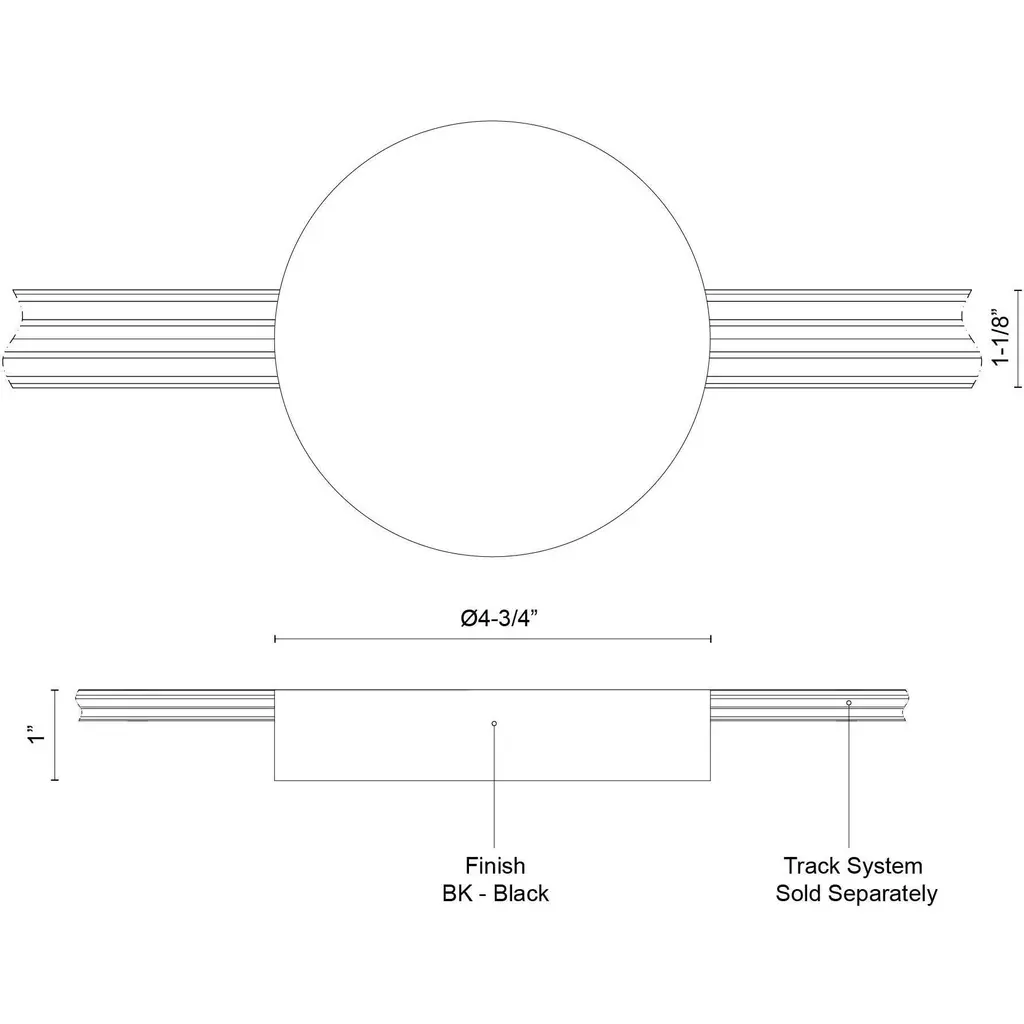 Center Feed Canopy can be placed anywhere on the Trilo track with rail cutouts on either side of the circular body.