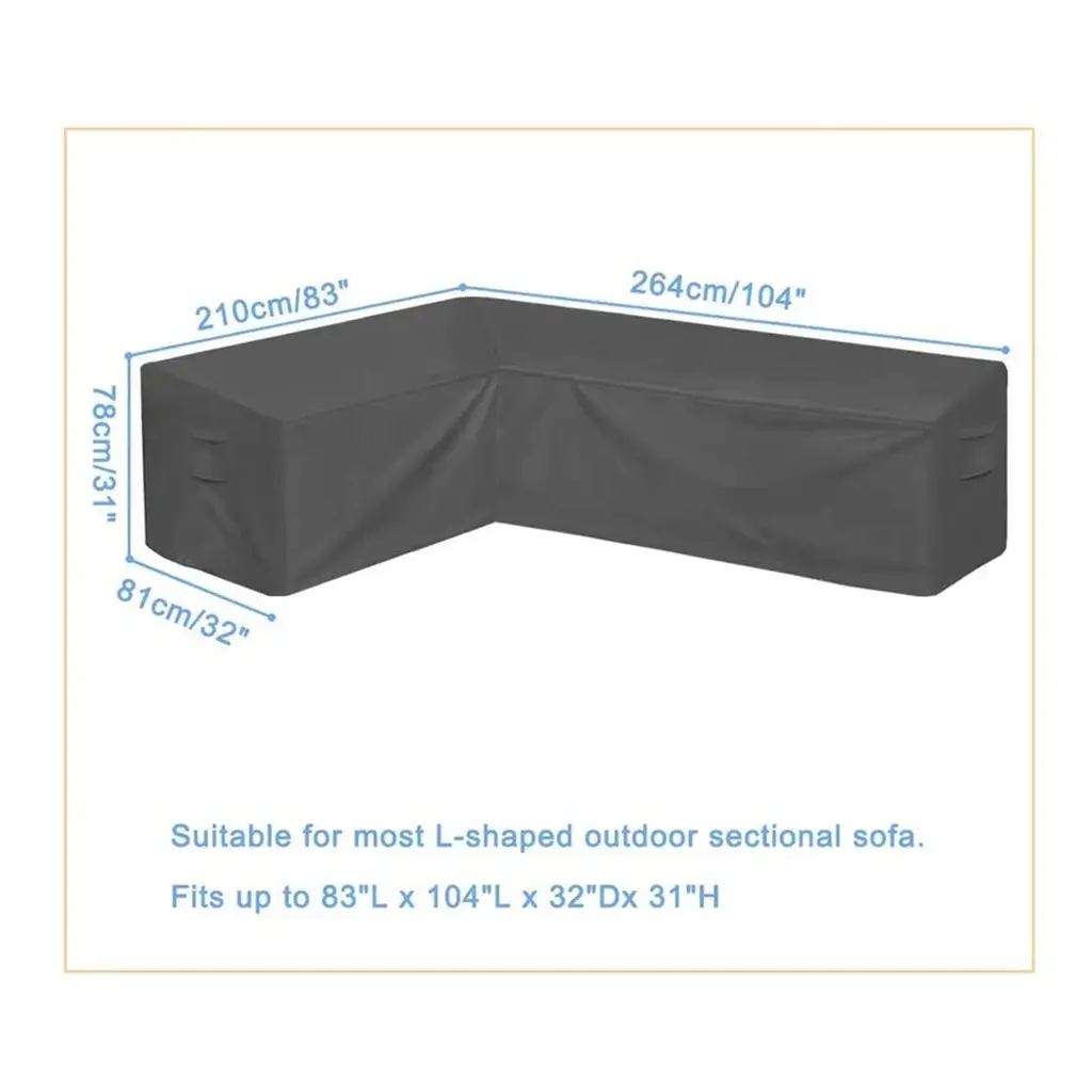 Ensure optimal protection for your outdoor sectional sofa with our meticulously crafted Patio Sectional Sofa Cover. Constructed using high-quality 420D high-density oxford fabric, this cover offers enhanced durability and resistance, surpassing many alternatives in the market. Key Features:Note: While designed for universal sofa cover sizes, always measure your patio furniture to ensure a perfect fit. Invest in the best protection for your outdoor furniture. Your patio sectional sofa deserves nothing but excellence.