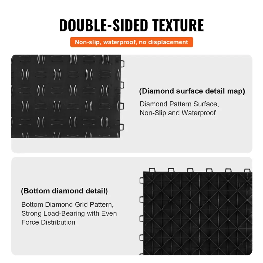 Vevor Garage Tiles Interlocking, 12 X 12 X 0.53 Inch 25 Pack Garage Floor Covering Tiles, Non-slip Double-sided Texture Garage Flooring Tiles