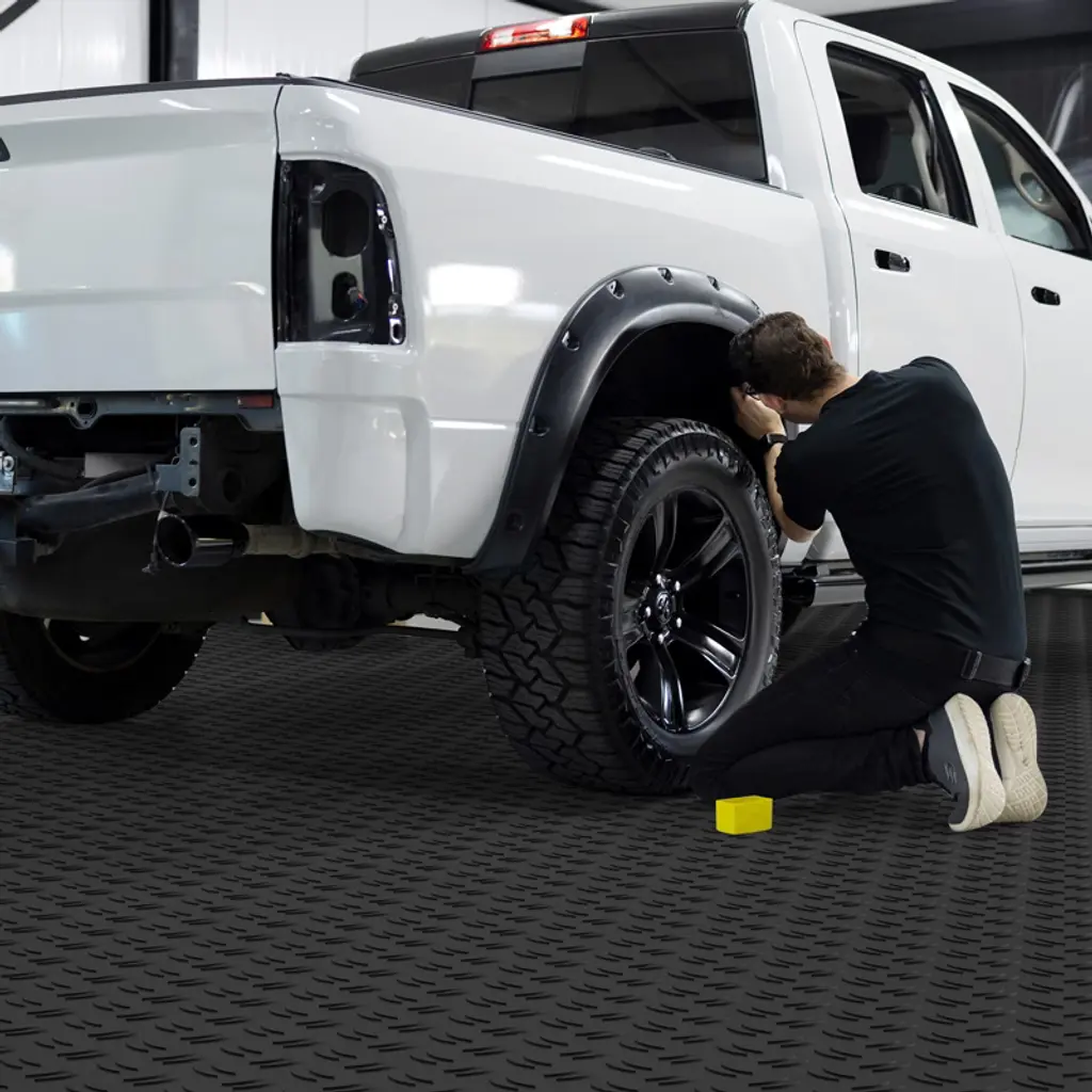 Feature: Multi-scene Versatility: Our garage tiles for multiple uses truly cover various scenarios. Whether it's a professional garage needing protection, or adding a comfortable shield in a personal warehouse, repair shop, or car exhibition, garage floor covering tiles are up to the task. 5500lbs Load Capacity: Our garage flooring interlocking tiles measure a thickness of 0.53inch / 13.4mm, ensuring outstanding wear resistance while providing robust load-bearing capability. It is capable of supporting up to 5500lbs without damage, even for large trucks. Upgraded Interlocking: These garage flooring tiles are enhanced with 6 interlocking loops for a smoother installation, ensuring a seamless fit without protrusions. Simply lay the garage floor tiles and interlock them within minutes. No tools, glue, or extra manpower required. Easy to Clean: Our garage tiles feature a 3D diamond-textured surface and rhombic grid bottom layer. Regular mopping and vacuuming maintain cleanliness. Superior Protection: Our interlocking garage floor tiles provide comprehensive protection for your floors, even for those prone to damage. Excellent non-slip properties ensure the mats stay in place. Package Content: 25 x Garage Tiles 1 x User Manual