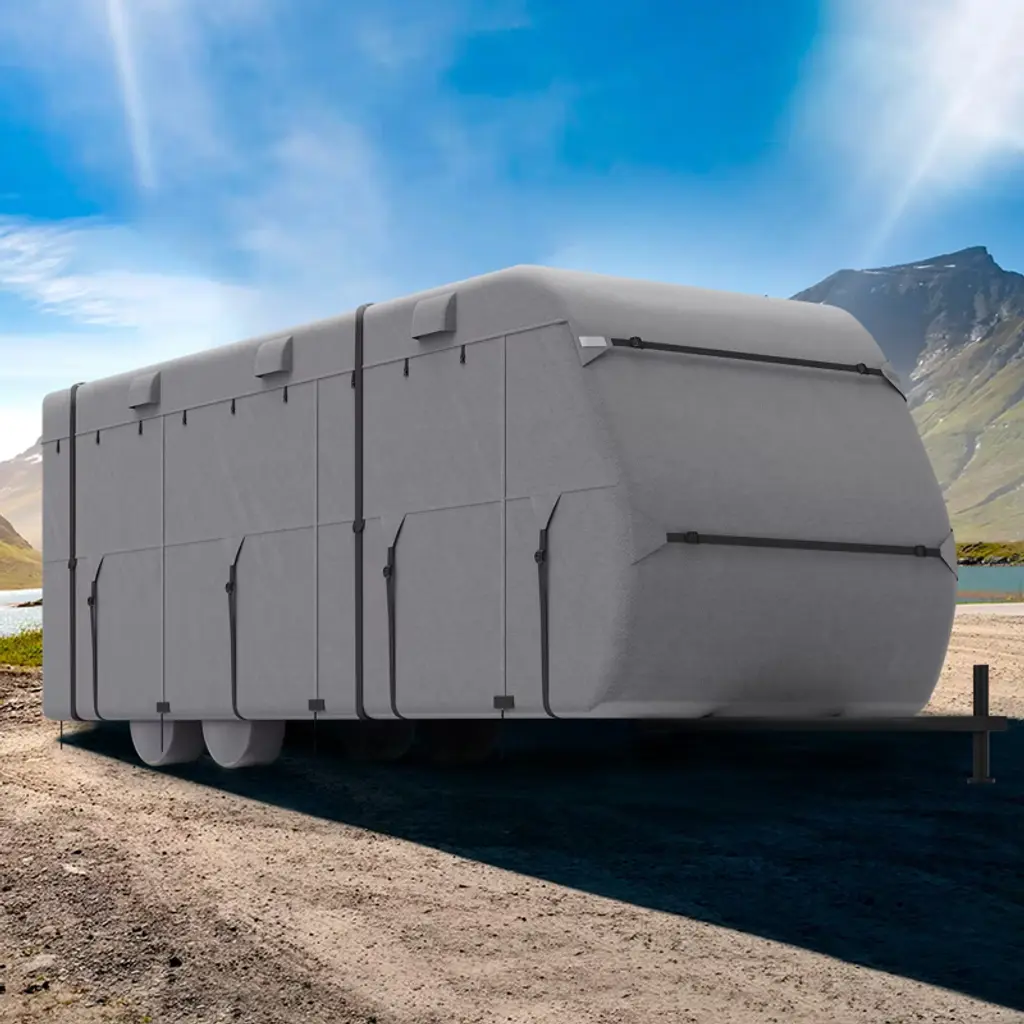 Vevor Travel Trailer Cover, 18-20 Ft Rv Cover, 4-layer Non-woven Fabric Camper Cover, Waterproof, Windproof And Rip-stop Class A Rv Cover, Gray