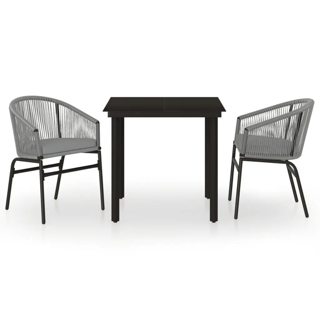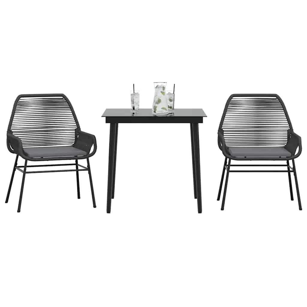 This 2-Seater Garden Dining Set is a solid pick for anyone wanting to elevate their outdoor dining experience. With a contemporary look, it blends style and function effortlessly, making it just right for intimate meals or lazy afternoons soaking up the sun on your balcony or patio. Stylish And Contemporary Design: The sleek black finish combined with comfy cushions gives an inviting vibe. This dining set will not only elevate your outdoor area but will add a modern touch wherever it lands. Your guests will be impressed by this standout piece at your garden gathering.Durable And UV-Resistant Materials: Made from top-quality Poly Rattan, this set is built to brave the elements while staying looking sharp. No more worrying about fading from sun exposure—it’s built to last.Comfy Cushions: Each chair has a plush, weather-resistant seat cushion that zips off for quick cleaning. Chill comfortably during meals, hangouts, or lazy days soaking up the sun. These cushions ensure a great seating experience outdoors.Easy To Clean: With removable cushion covers, keeping this set spick and span is easy. Just unzip and wash the covers, and wipe down the rattan and glass surfaces with a damp cloth. Enjoy dining without the stress of heavy upkeep.Great For Various Settings: This set isn't just for meals; it's also perfect for winding down with a drink in your garden or patio. Its adaptability to different outdoor occasions makes it a must-have for your home.