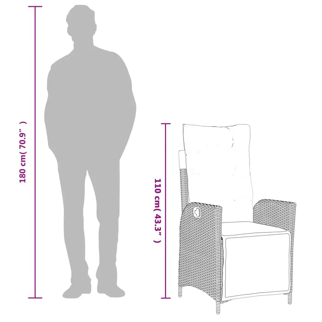 This 5 Piece Garden Dining Set gives you the perfect blend of style and practicality, making it ideal for outdoor dining and lounging in your garden or patio. The set includes four reclining garden chairs and a spacious 55.1 in tempered glass table, elevating the overall look and comfort of any outdoor space. Adjustable Features: The set includes a multi-position backrest for finding your perfect lounging angle. The adjustable footrests make lounging even better, so you can really enjoy your meals or just kick back. Sturdy Construction: Made from powder-coated steel, this dining set is built to last, handling rough weather like a champ. The poly rattan weaving is both stylish and weather-resistant, ensuring it stands the test of time. Elegant Design: The modern look with clean lines and minimal fuss fits in well with any outdoor style. Whether it’s your backyard, balcony, or patio, this set elevates the atmosphere. Easy Maintenance: With removable and washable cushion covers, keeping things clean is a breeze, making sure your outdoor dining spot stays welcoming and tidy. Max Weight Capacity: Each chair can hold up to 242.5 lbs, making it great for adults of all sizes, so everyone can relax and enjoy meals comfortably.