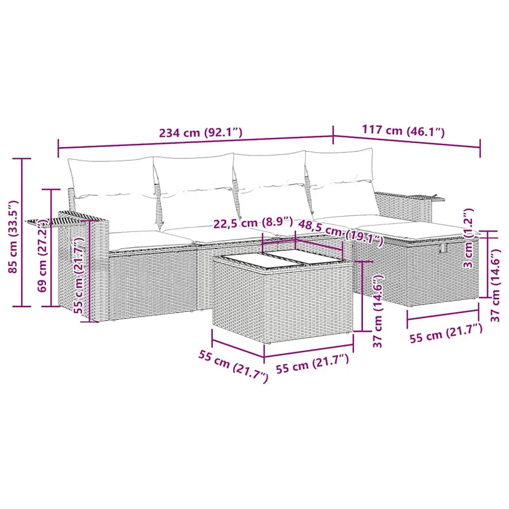 This 5-Piece Modular Garden Sofa Set is a cool addition to any outdoor space, blending style and function for your patio or balcony. With its sleek poly rattan finish in rich black, it brings a modern vibe that complements contemporary landscaping and furniture. The modular design makes it super easy to rearrange, fitting snugly into your outdoor setup while keeping a stylish look. Each seat comes with storage spots, cleverly designed to keep your cushions safe and dry, emphasizing order without skimping on style. Made with UV- and water-resistant materials, this set is built to handle the elements, making it perfect for outdoor fun year-round. Comfort meets style with removable breathable cushions upholstered in cute blue fabric, brightening up your outdoor space while keeping you and your guests comfy. Great for gatherings or chill evenings, the sectional design comfortably seats up to five, encouraging good conversations and relaxation outside.