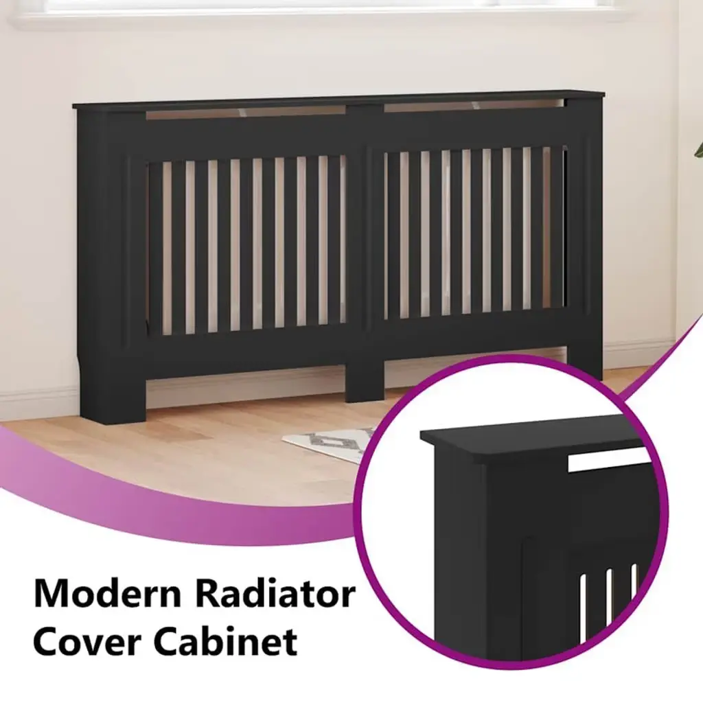 This set of two engineered wood radiator covers offers a stylish and practical way to conceal your radiators while enhancing your living space. Designed with a modern look and a smooth, matte finish, these covers blend seamlessly into contemporary interiors. The vertical slat design ensures optimal airflow while keeping your space looking tidy and elegant.Key Features• Modern, chic design with clean lines• Made from durable, water-resistant engineered wood• Smooth matte finish for a sleek appearance• Easy to maintain—just wipe clean with a dry cloth• Covers sharp radiator edges for added safetyFunctional Benefits• Conceals radiators for a neat, uncluttered look• Provides extra shelf space for decorative items or photos• Vertical slats allow efficient heat circulation• Simple assembly requiredProduct Details• Set includes: 2 radiator covers• Color options available: Anthracite, Black, Brown, Gray, White• Size options available: 30.7" x 7.5" x 32.1", 44.1" x 7.5" x 32.1", 59.8" x 7.5" x 32.1", 67.7" x 7.5" x 32.1", 80.7" x 8.1" x 32.1"• Material: Engineered wood• Overall dimensions (per cover): 59.8" x 7.5" x 32.1"• Weight (per cover): 23.6 lbs• For indoor use onlyEasy Assembly & Maintenance• Assembly required; instructions included• Low-maintenance surface—simply wipe cleanUpgrade your home with these versatile radiator covers, available in multiple sizes and colors to fit your décor and space needs.