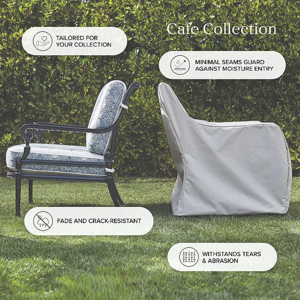 Tailor-made to fit every item in our collections, our premium furniture covers deliver an unparalleled level of protection for your Frontgate furniture. Sewn from 900-denier, solution dyed polyester fabric, these covers guard against searing sun, blinding rain and bitter cold. Engineered to resist tears and abrasions, the covers also shrug off mold, mildew, water and wind, with heavy-duty buckles that hold covers securely in place. The covers are cut and sewn to graze the ground, delivering ample coverage from top to bottom. Each cover sold separately 100% solution dyed polyester fabric With routine cleaning and care, resists mold, mildew and fading View complete care instructions UV colorfast up to 1,000 hours Water-resistant fabric and a minimal number of seams guard against moisture entry Engineered to withstand tears and abrasion Won't fade or crack in temperatures as high as 180°F or as low as 0°F Imported At Frontgate, our primary focus is quality. We guarantee that every product we sell will stand up to the supreme test – our customers' satisfaction. To learn more about our policies, visit our Shipping & Processing, Returns & Exchanges and Warranty & Price Guarantee pages.