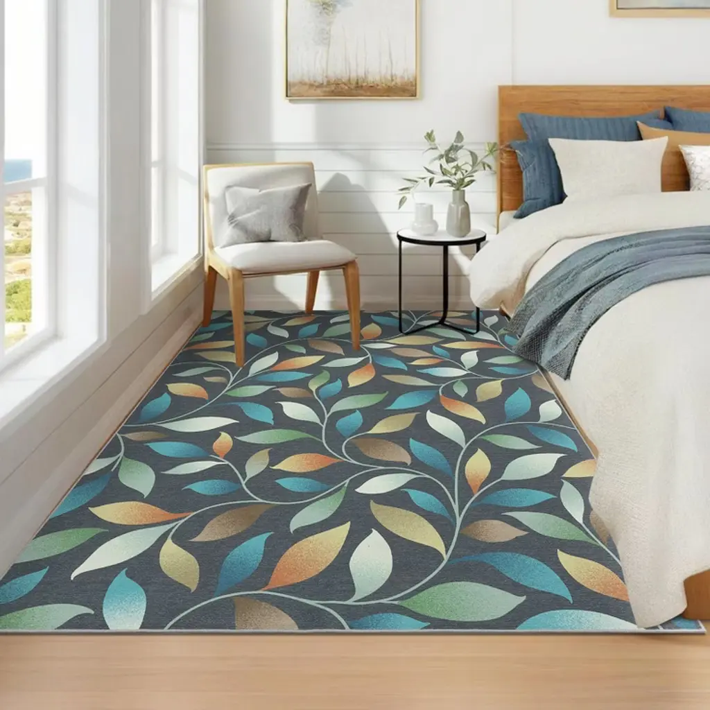 Washable Modern Floral Rug Non Slip Low Pile Rug Soft Throw Floor Cover Foldable Indoor Carpet For Living Room Bedroom,gray Blue/9'x12'