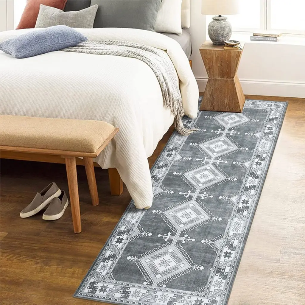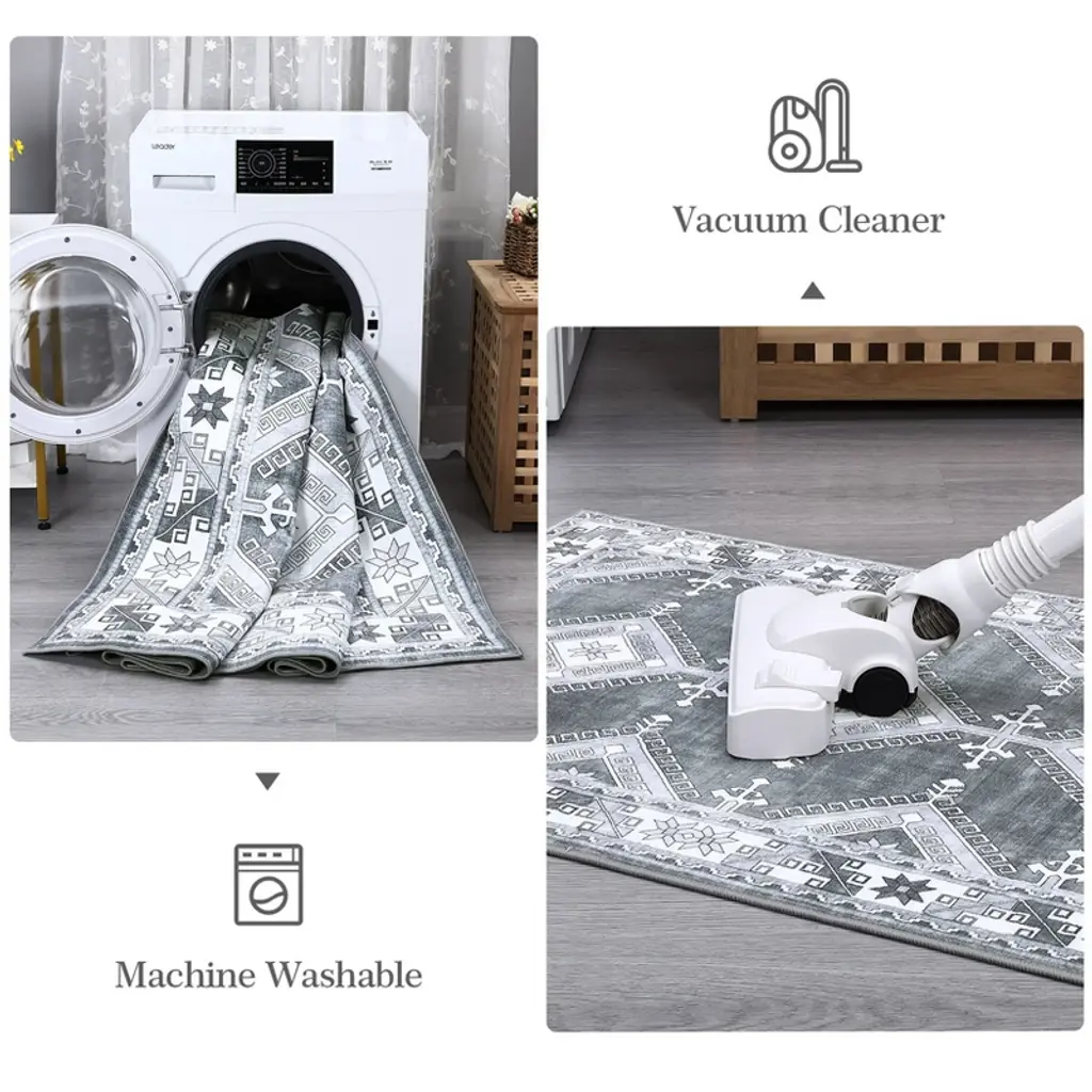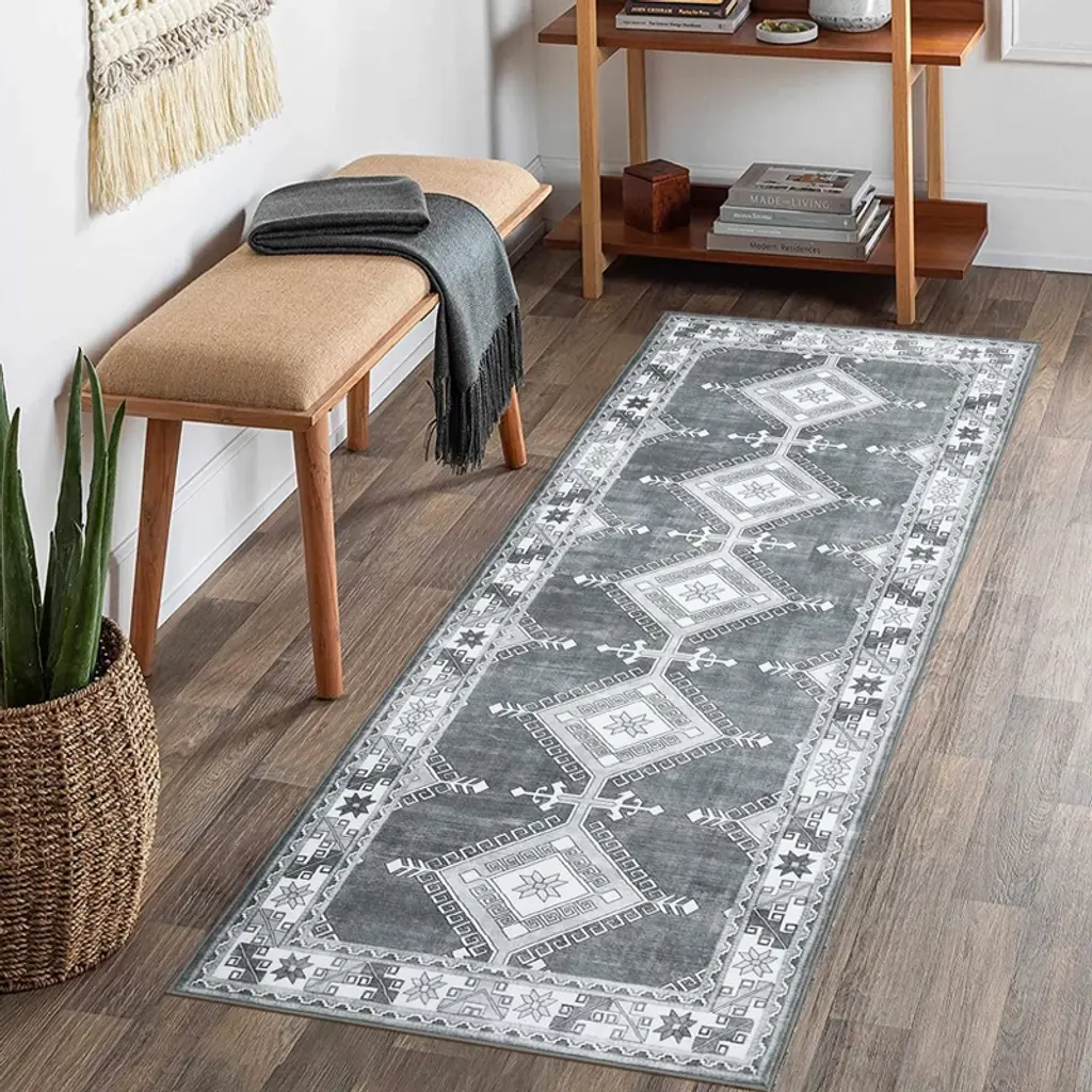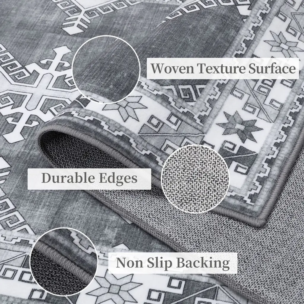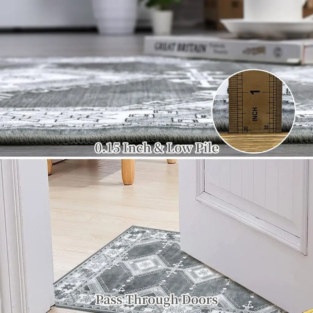 Washable Vintage Rug Non Slip Low Pile Rug Soft Throw Floor Cover Foldable Indoor Carpet For Living Room Bedroom Playroom,grey/2'x6'