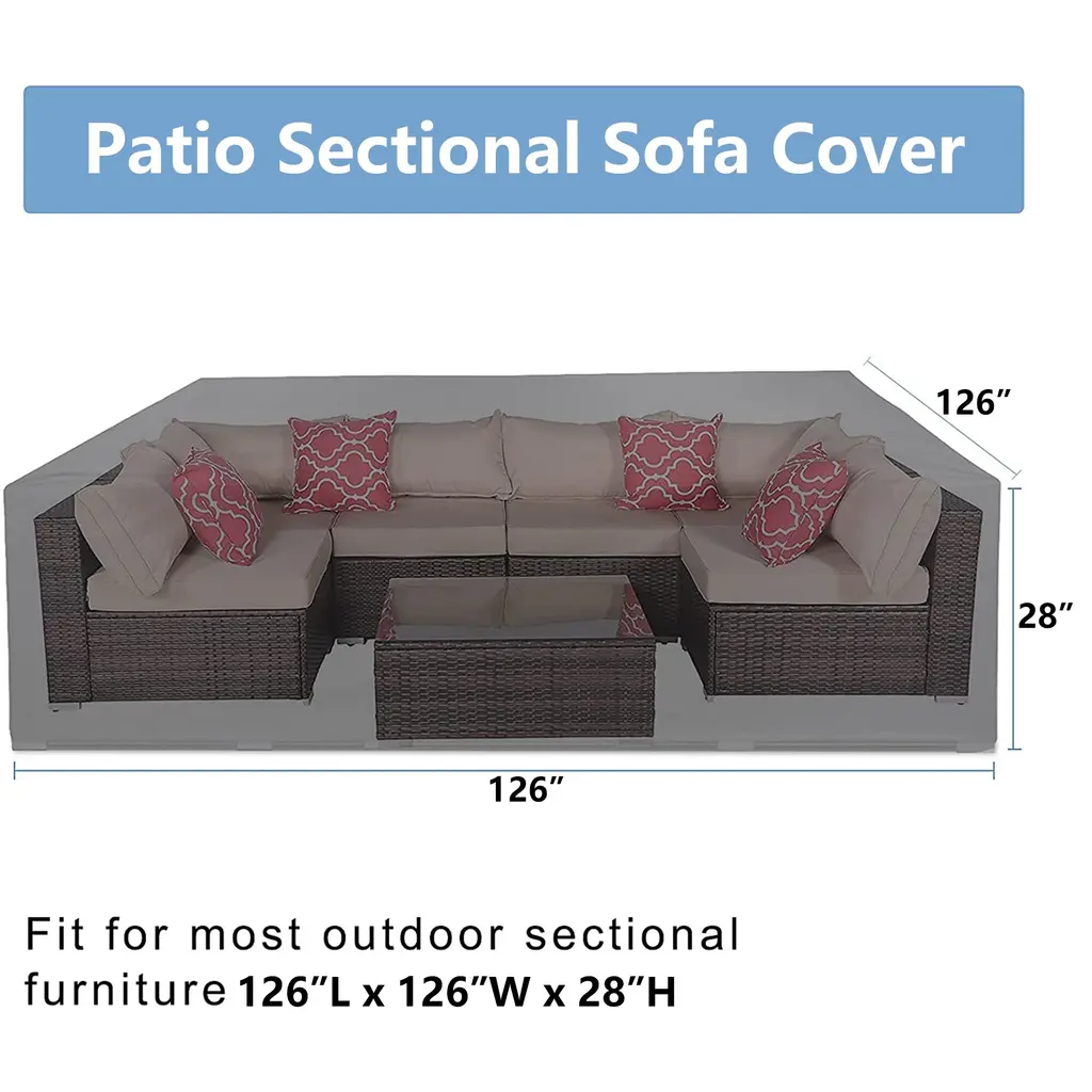 Waterproof Patio Furniture Covers Outdoor Table Sofa Set Covers Windproof - 126"x126"x28"