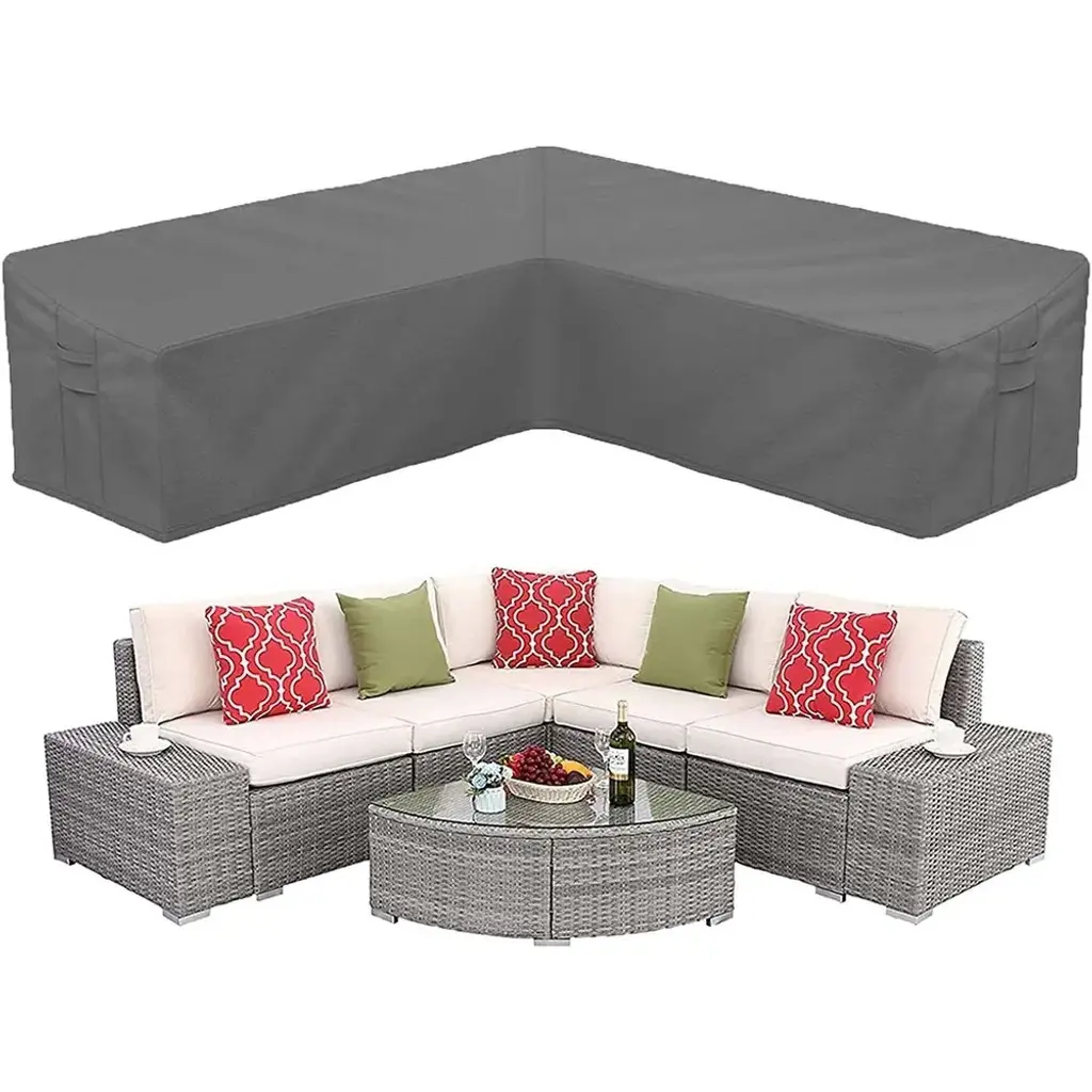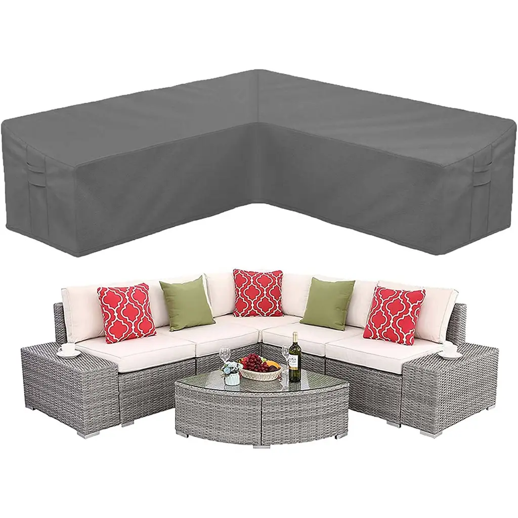 Protect your outdoor sectional sofa against the elements with our upgraded L-Shaped Outdoor Furniture Cover. Made of durable 600D oxford fabric and tested to withstand all kinds of weather, our cover effectively prevents your furniture from getting wet due to rain or snow and aging due to sun exposure. The waterproof design, complete with undercoating and waterproof strips, ensures that your patio furniture stays dry. With windproof buckle straps and an adjustable drawstring at the bottom, you can adjust and secure the cover for a snug fit. Air vents keep air circulating and reduce condensation. Our gray patio couch cover is easy to clean and comes with a storage bag for easy carrying and storage.Features: