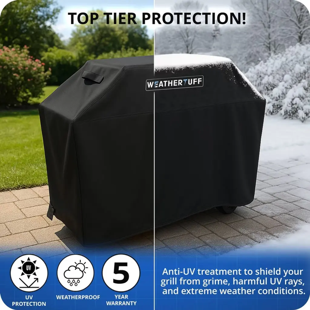 Get ready to dominate the elements and keep your beloved grill in prime condition with the WeatherTuff Premium Grill Cover! Forget flimsy, easily torn covers – ours is crafted from heavy-duty honeycomb jacquard fabric that’s built to laugh in the face of rips and tears, ensuring season after season of unwavering protection.