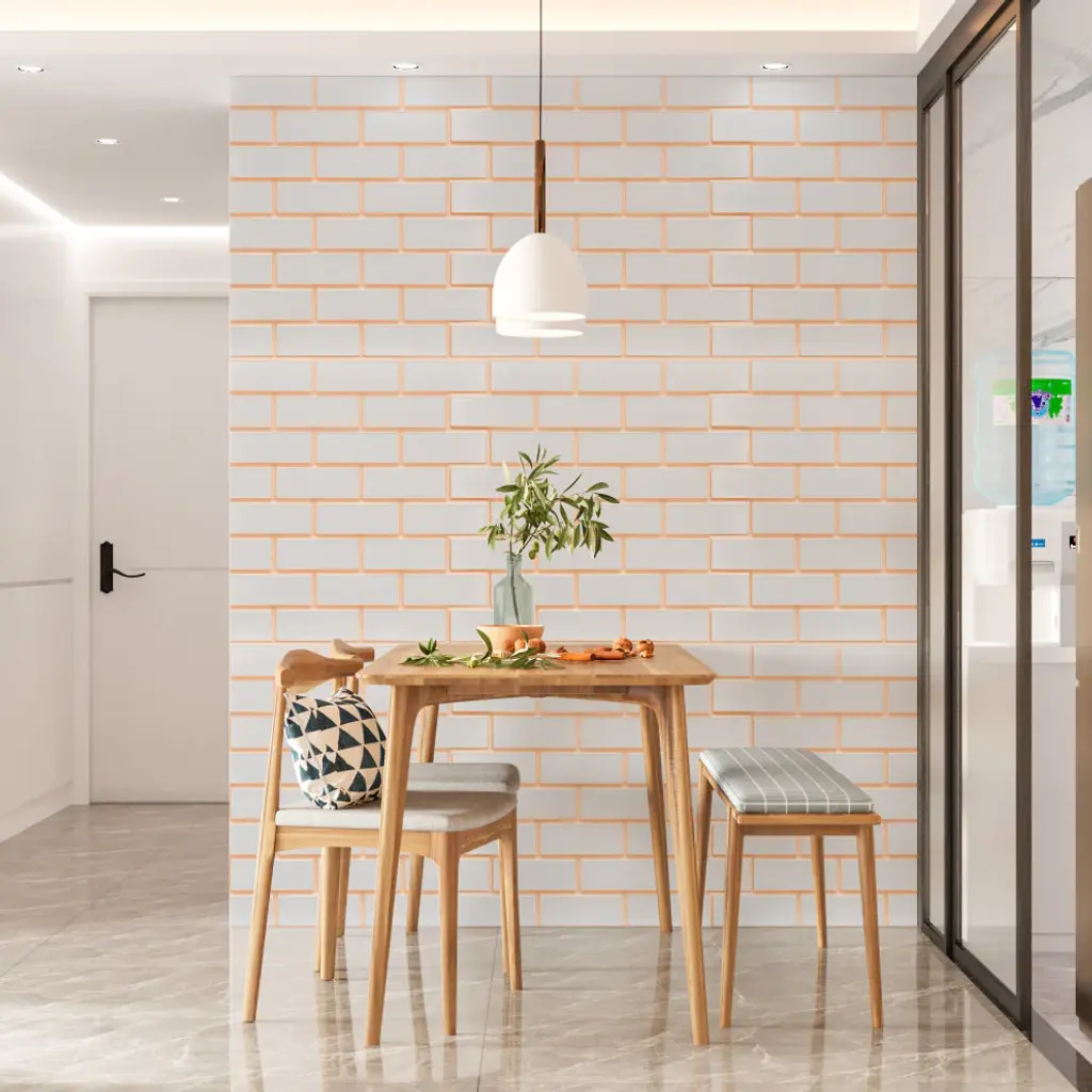 White Beige Brick 3D Wall Panels, Set Of 5, Covers 19 Sq Ft