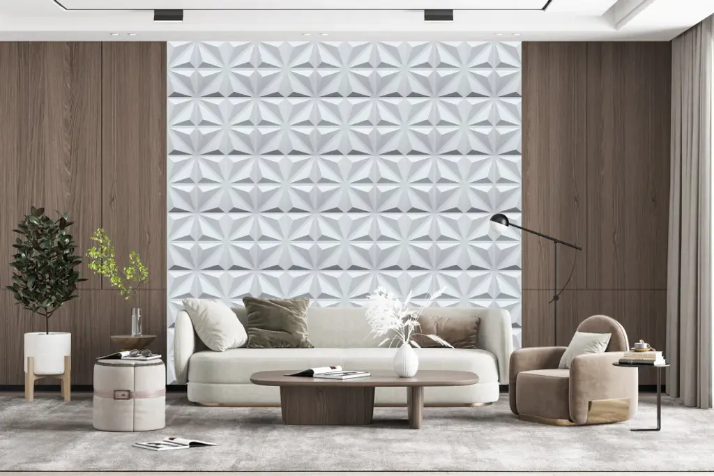 White Geometric 3D Wall Panels, Set Of 10, Covers 26.9 Sq Ft