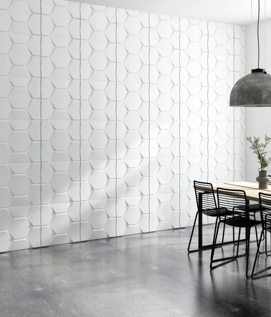 White Trapezium 3D Wall Panels, Set Of 10, Covers 26.9 Sq Ft