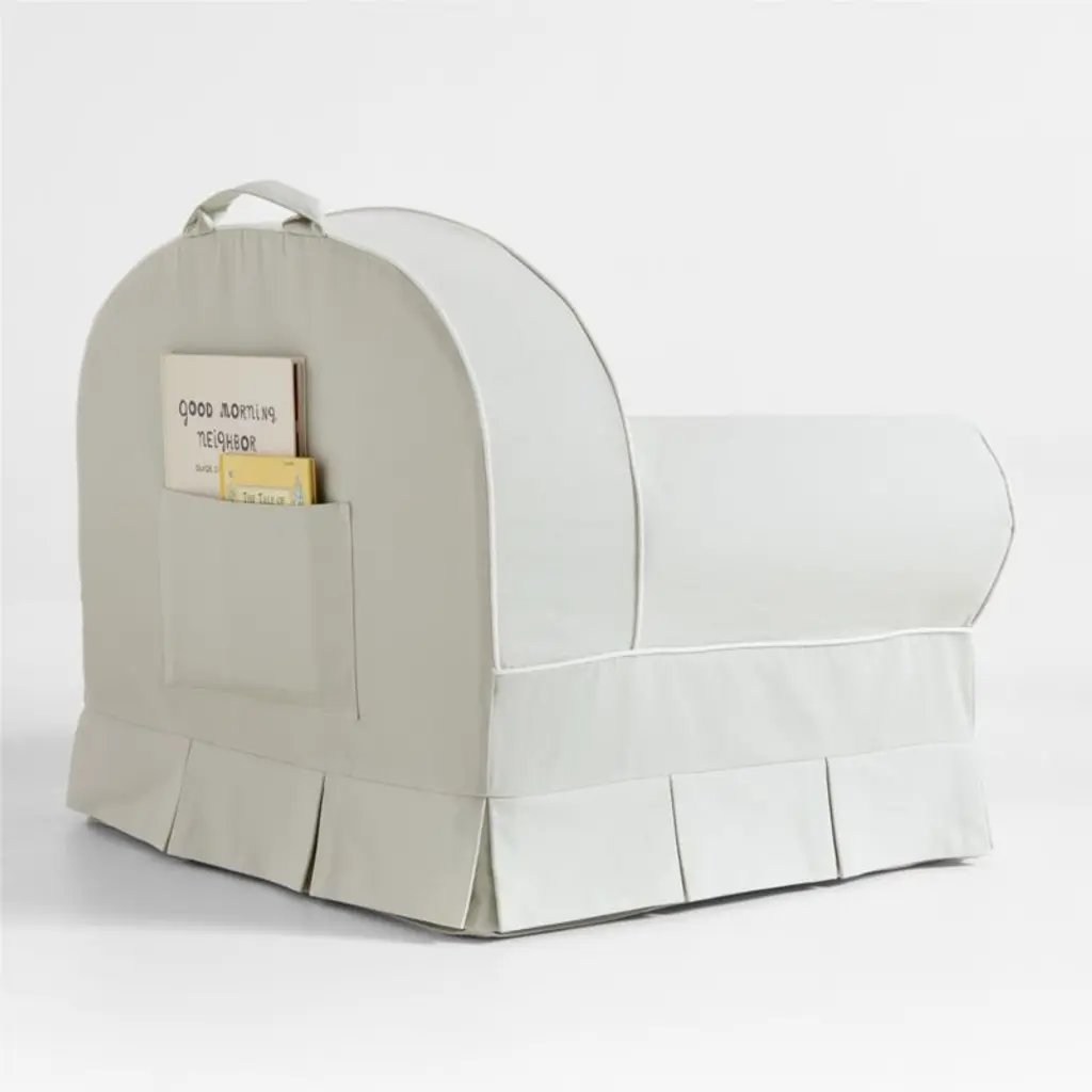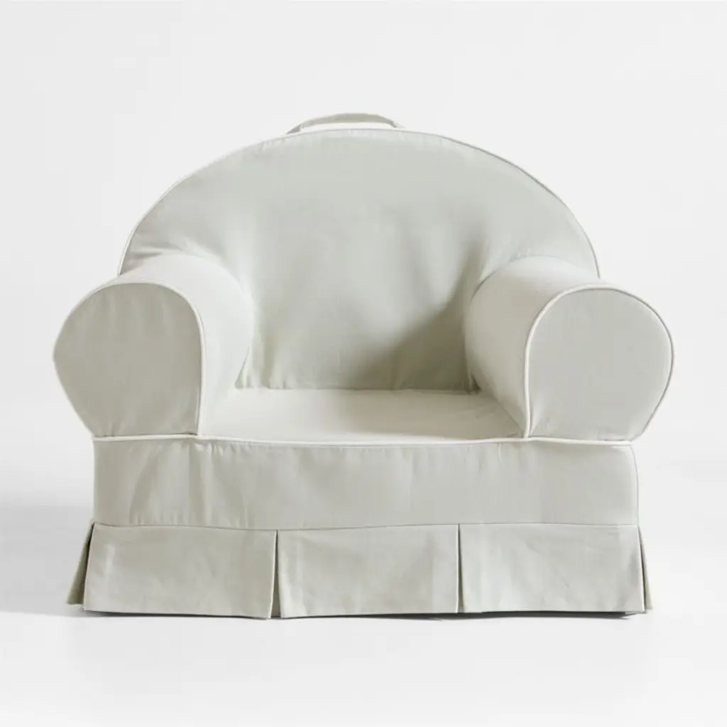 The comfiest seat in the house? Meet our livable and lovable Nod Chair, designed to lounge and look great in any room. With just enough bounce and sized just right, this fan favorite has a frameless foam design that holds its shape through plenty of play. In pure organic cotton that's soft and extra-durable, the cover by designer Jake Arnold comes in a beach-inspired glass green hue. Finished in crisp white piping with chic box pleats, it brings high design to the playroom. Perfect for family game nights or morning cartoons, the chairs are easy to tote around thanks to the durable handle up top. A back pocket keeps favorite books close by during storytime. Pro parent tip: The zippered cover is easy to remove and toss in the wash.For his first-ever baby and kids collection, exclusively at Crate & Kids, interior designer Jake Arnold was inspired by the dreamy childhood spaces he's created for A-list clients.