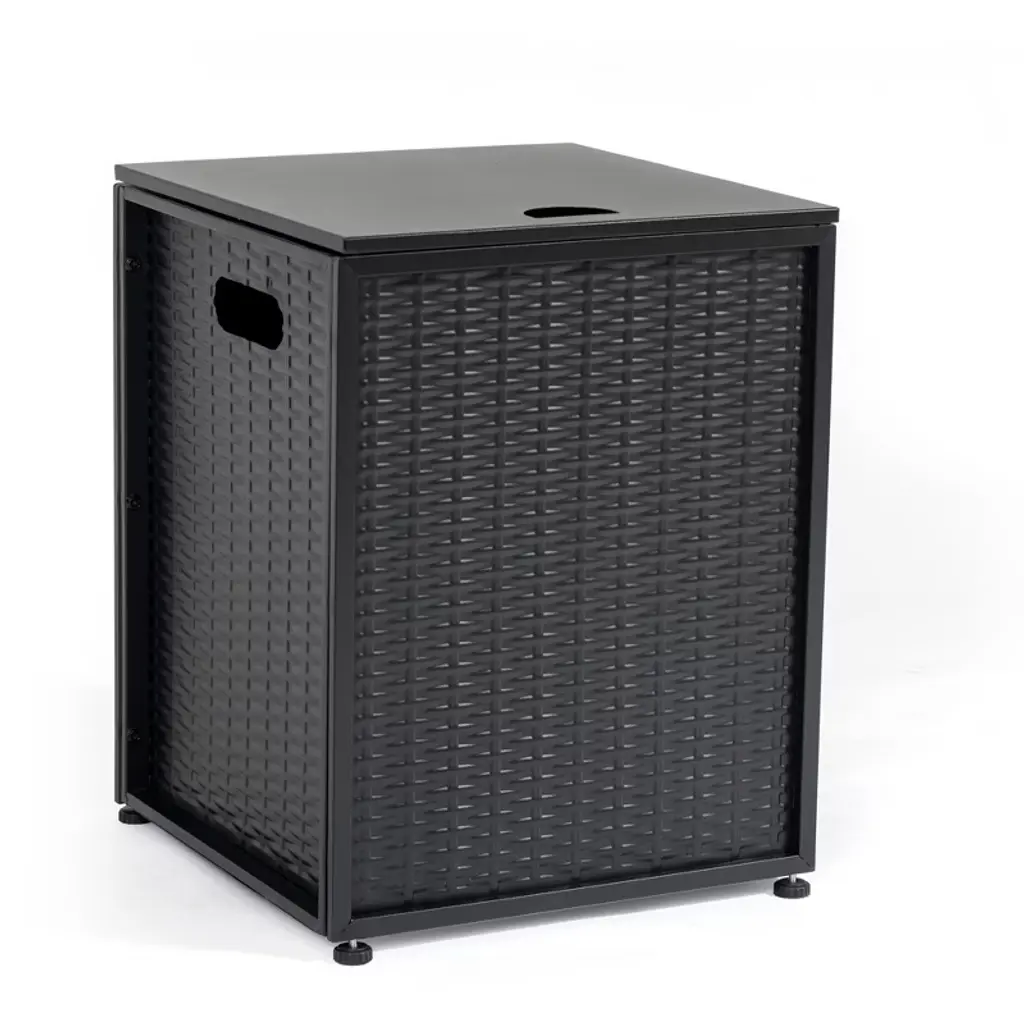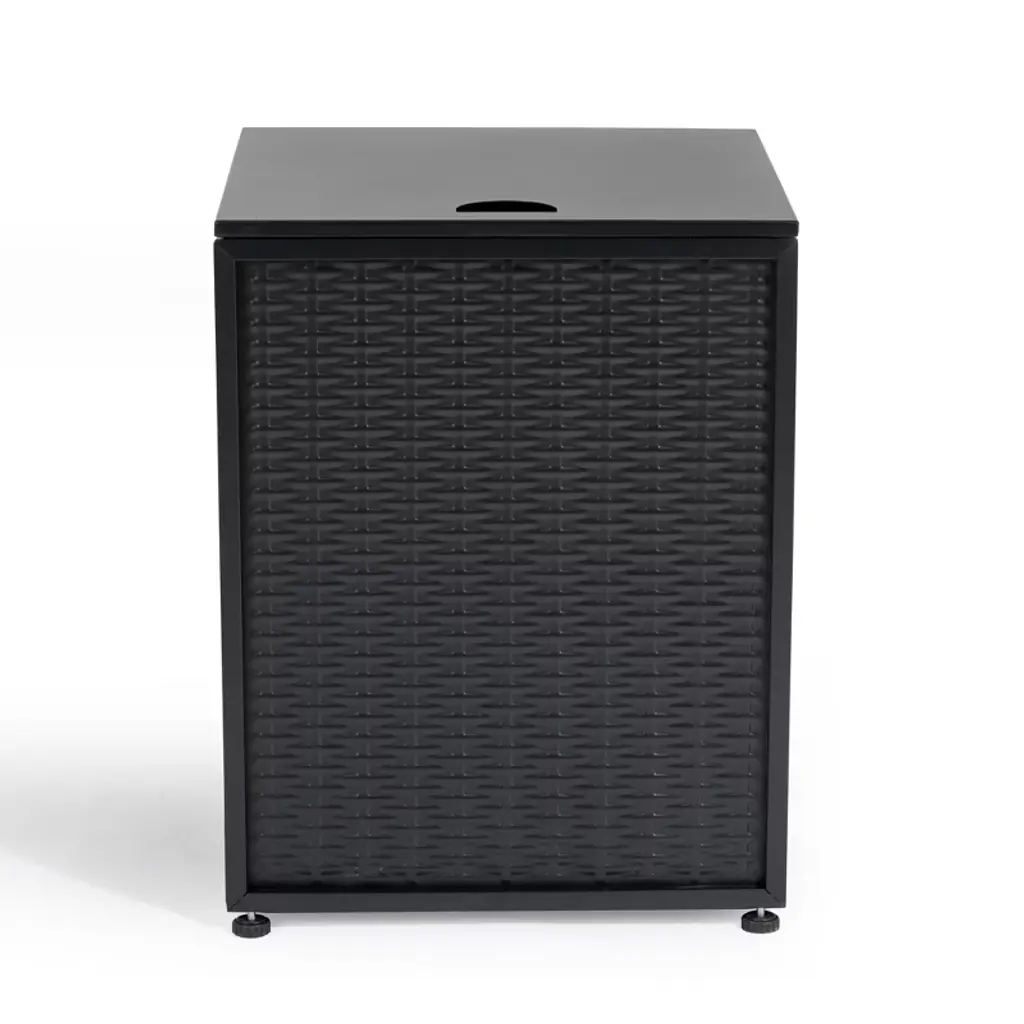 Upgrade your patio or backyard with this woven rattan style propane tank cover, combining functionality and style. Conceals a 20LB propane tank while serving as a versatile tabletop or decorative stand.