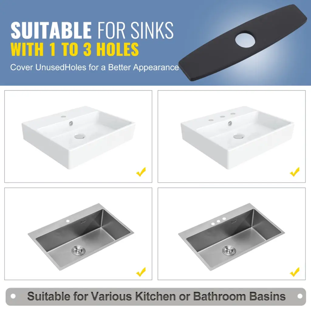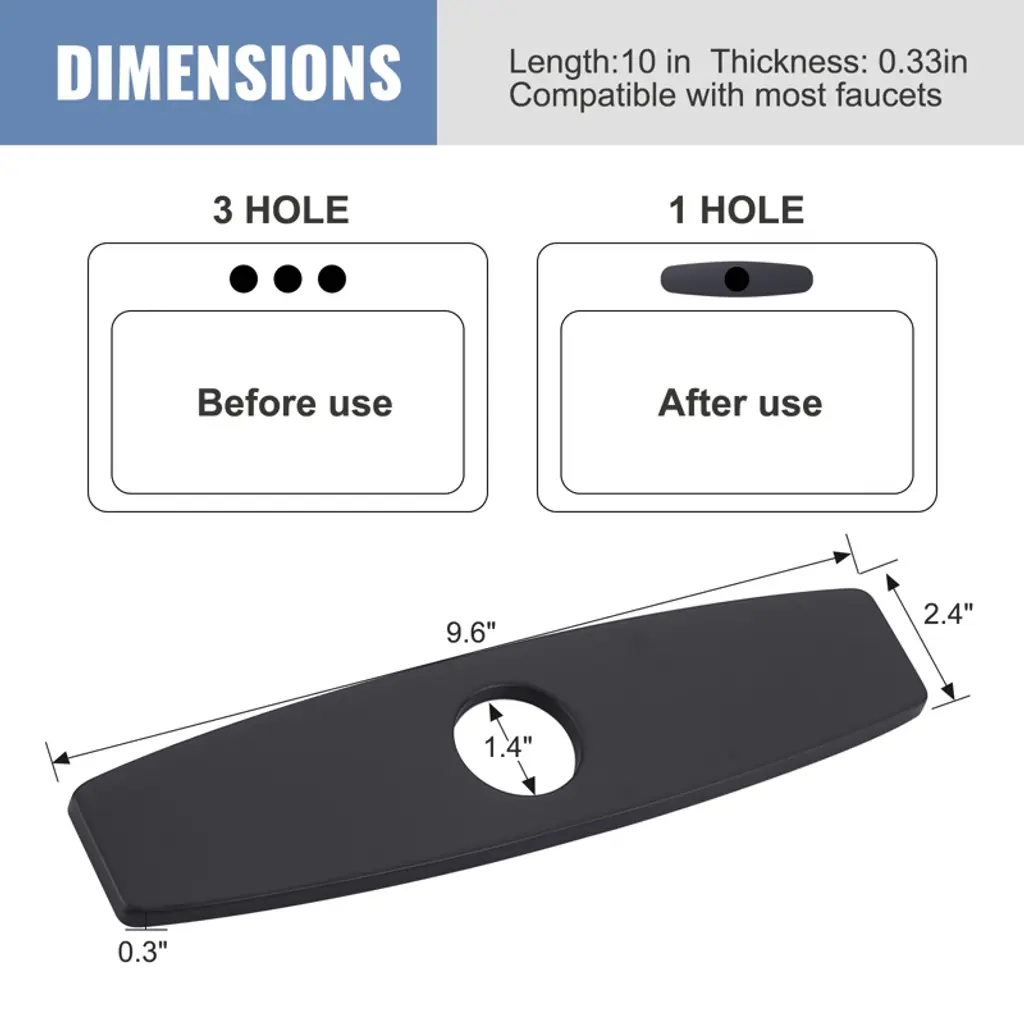 Wowow 9.6 In. X 2.4 In. X 0.3 In. Stainless Steel Kitchen Sink Faucet Hole Cover Deck Plate In Matte Black