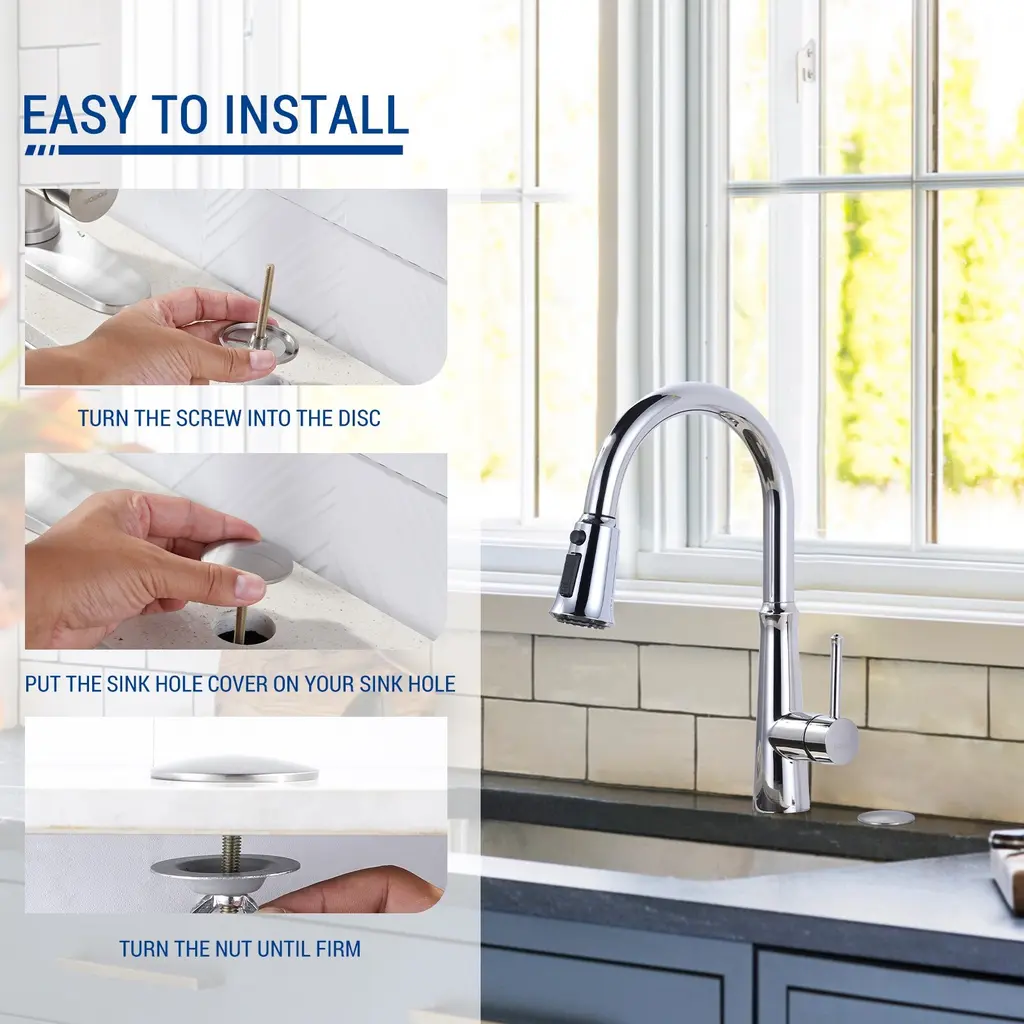 WOWOW's versatile sink hole cover fits any hole size from 0.31 to 1.89 inches, making it a smart solution for hiding unused faucet or sprayer holes in your kitchen or bathroom. Built with a heavy-duty copper screw and rust-resistant metal hardware, it ensures long-lasting performance. Tool-free installation means quick setup, and the sleek top disc is available in multiple finishes to complement your sink and fixtures perfectly.Feature: