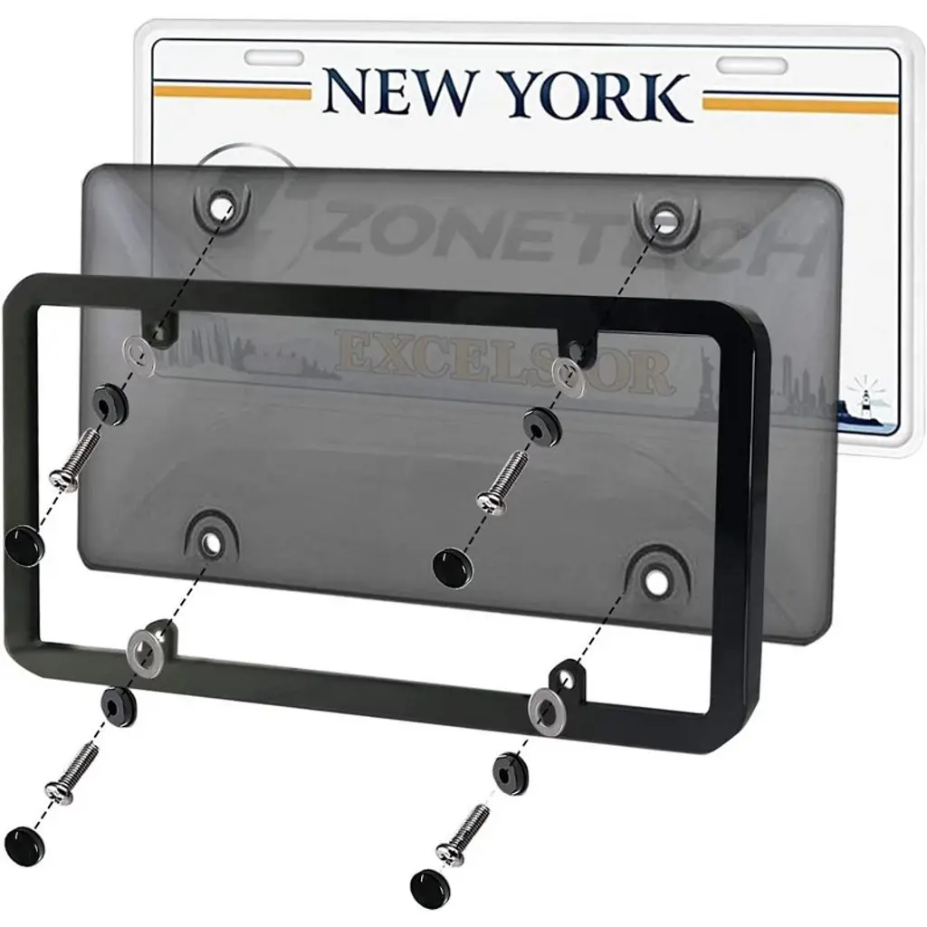 Zone Tech Clear Smoked License Plate Cover Frame Shield Combo - 2-pack License Plate Clear Smoked And Black Bubble Shield And Frame- Screws Included