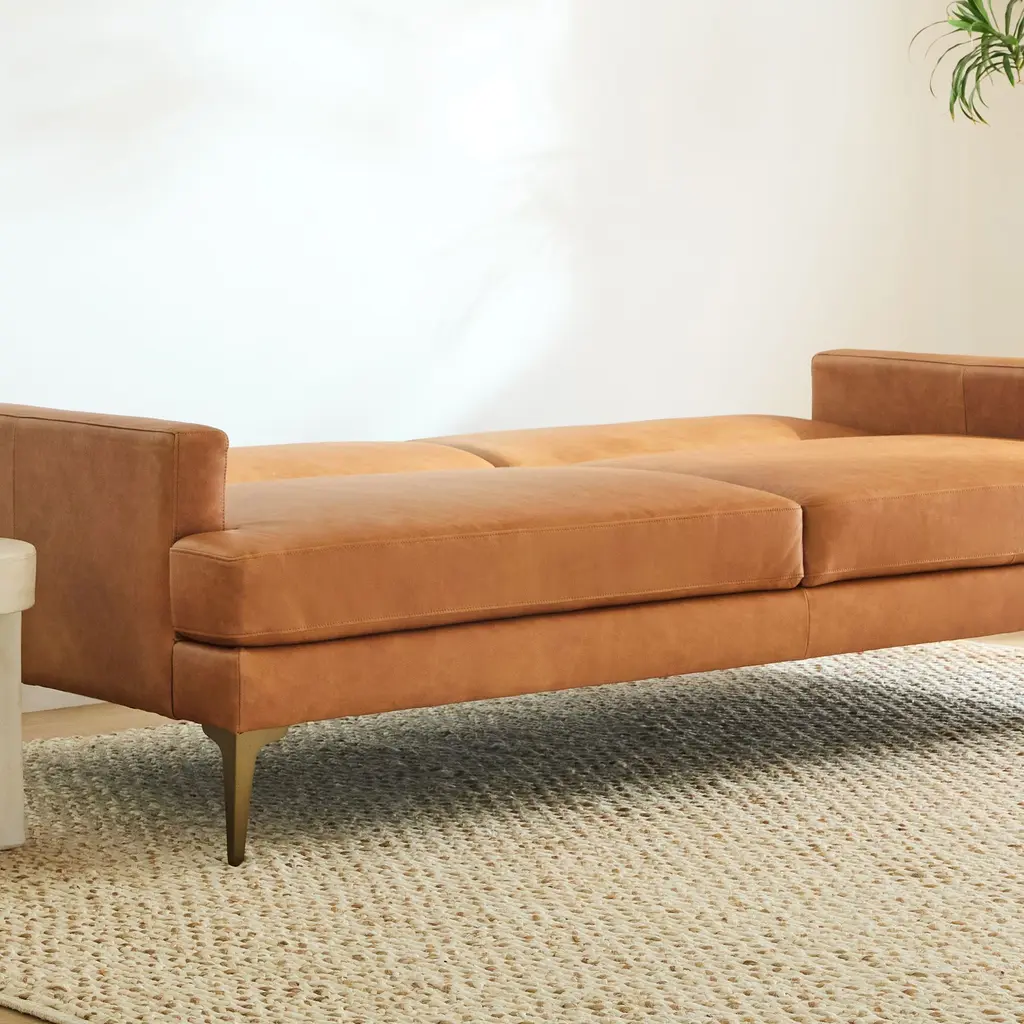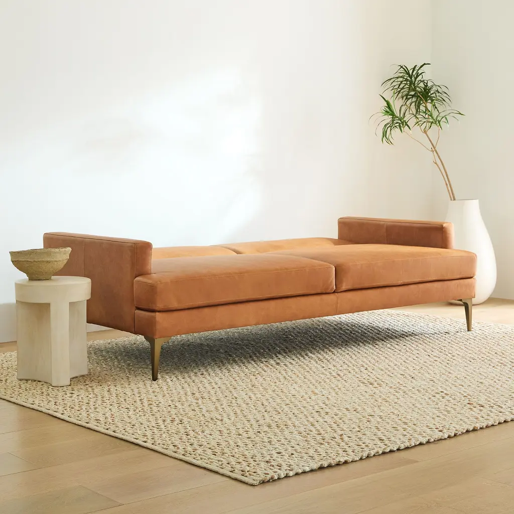 Modern form, crisp tailoring & shapely legs. A sofa by day, a handy two-sleeper by night. Frame is made of solid, kiln-dried wood. Easy to unfold & fold back up again.
