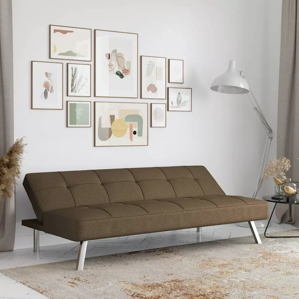 When versatility is needed, the Serta Colette Convertible Sofa by Lifestyle Solutions fits the bill. Made for high traffic areas, this armless convertible is the perfect combination of functionality and modern style. The kiln dried eucalyptus and chrome legs make a robust frame while the self-piping details on the high-density foam cushions add sophistication. Our patented Finger Guard® technology allows you to safely transform from sofa to bed without fear of injury.