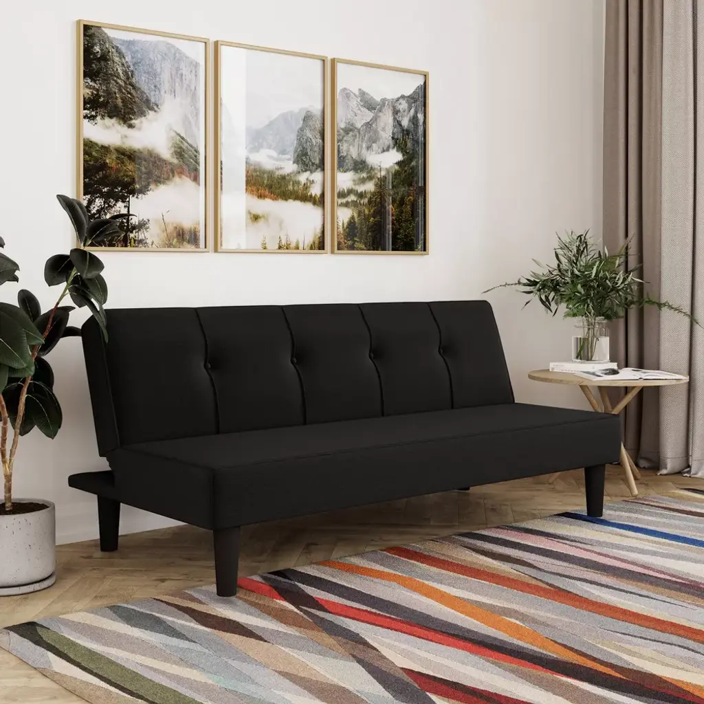 Lorrance 3 Seat Convertible Futon Sofa Bed Black - Serta: Modern Twin Sleeper, Armless Design, High-density Foam