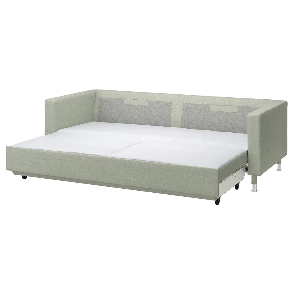 NYHAMN Sleeper sofa - with pocket spring mattress/Knisa gray/beige. Thanks to the click-clack mechanism, this sofa quickly and easily converts into a spacious bed when you pull the underframe upwards and fold down the backrest. 10 year Limited warranty. Read about the terms in the warranty brochure.