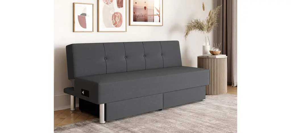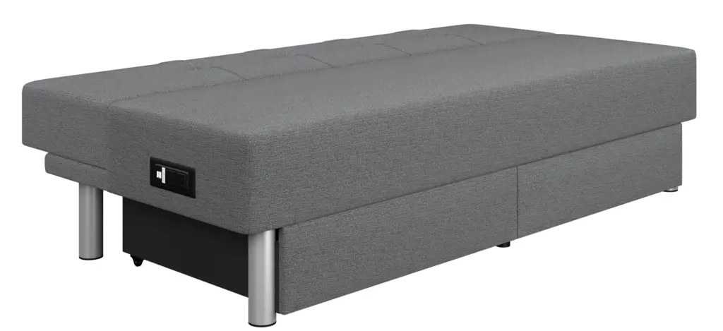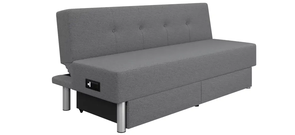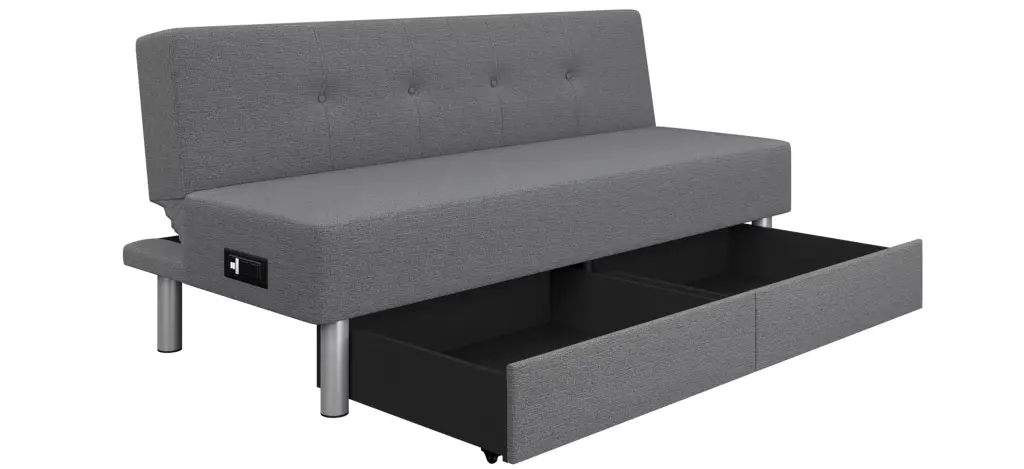 Create a cozy sleeping area for guests with the Waterford Convertible Futon. Memory foam cushions are covered in soft polyester fabric and provide lasting comfort. The sturdy hardwood frame ensures years of use. The integrated power outlet and USB port will keep you charged and connected.