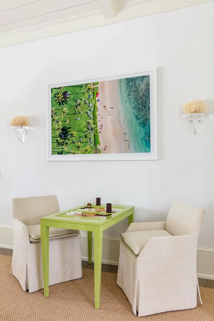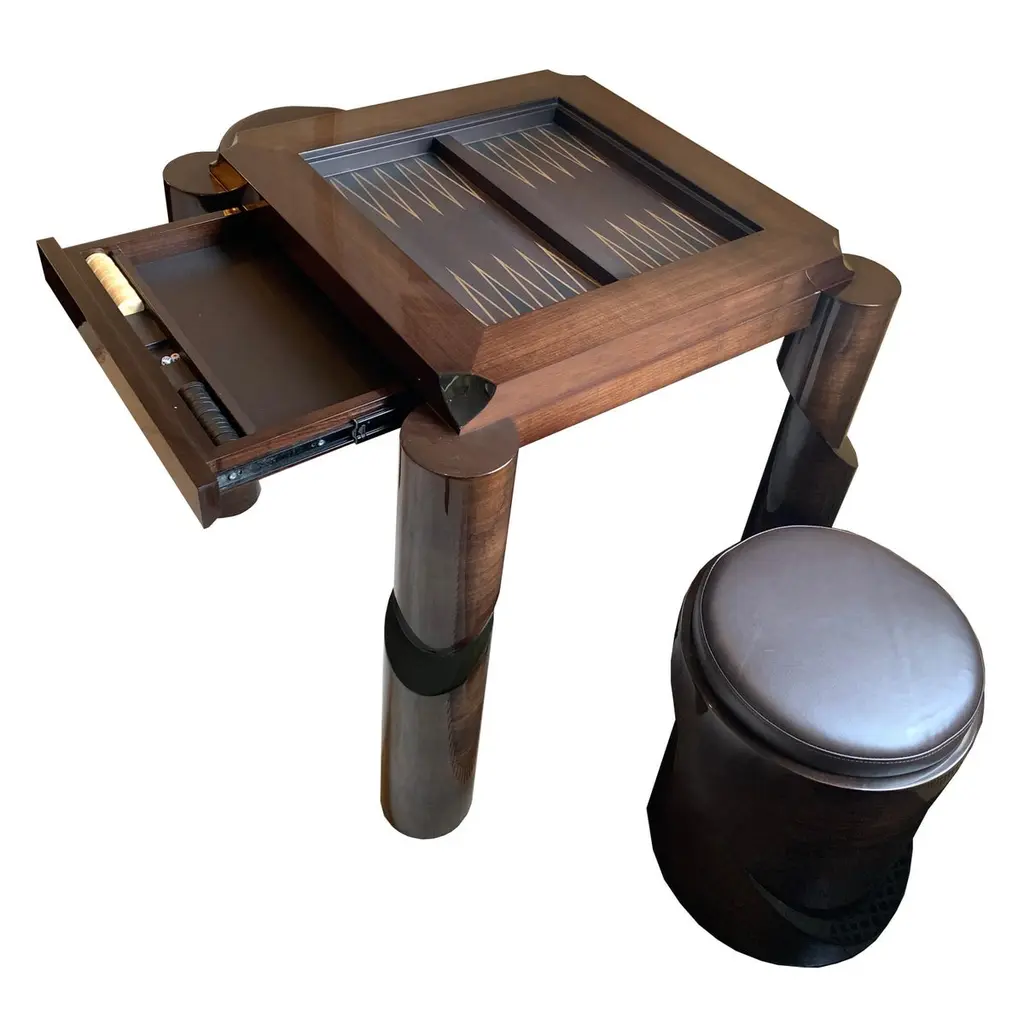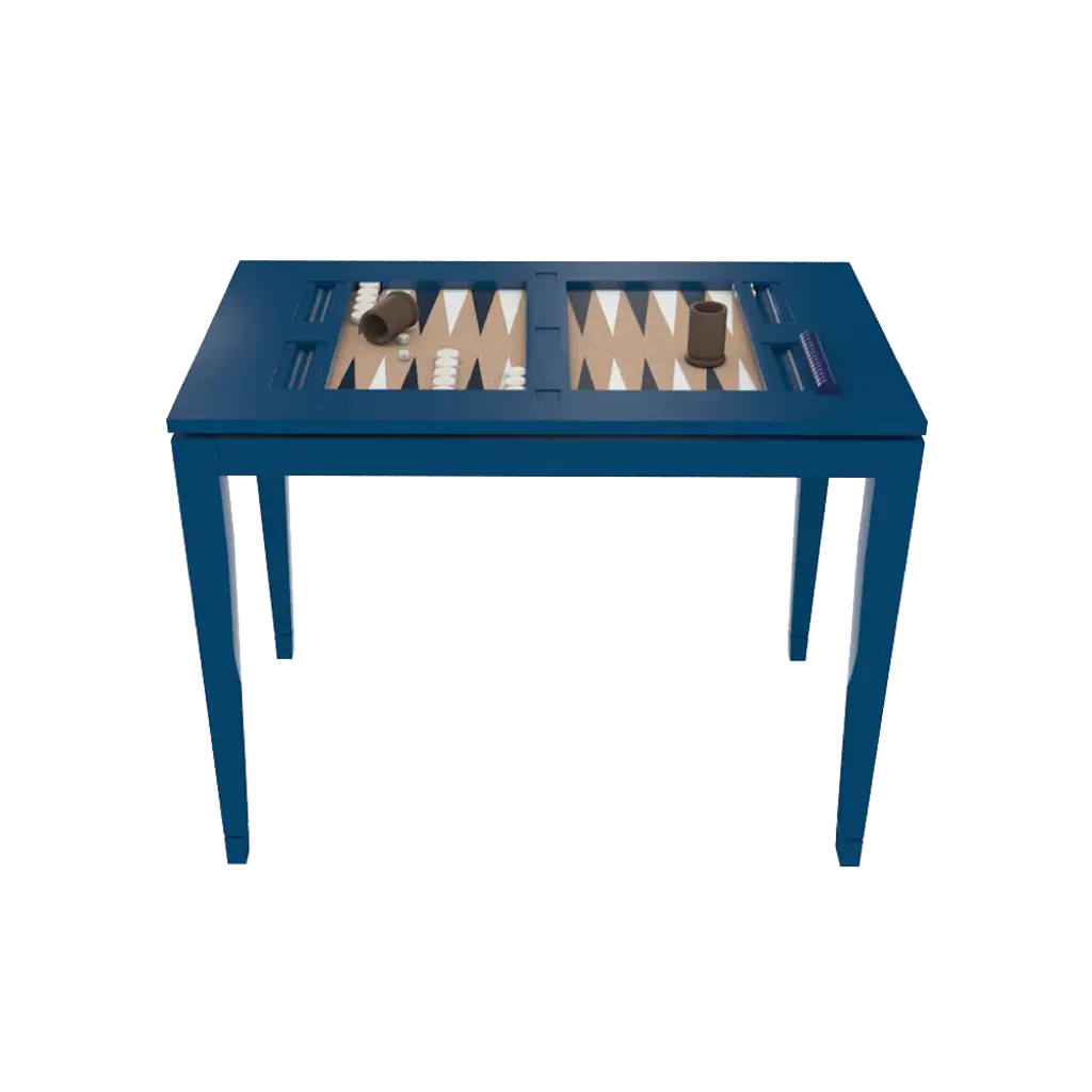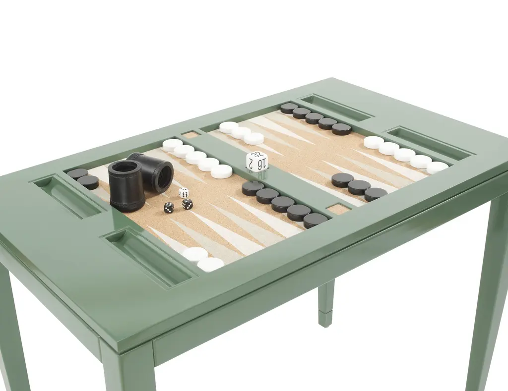 Dimensions: 39W x 24D x 29.25 H The show-stopper, the conversation piece, the ultimate home accessory. To us, a backgammon table is like a fireplace - you've got to have one! Before or after dinner, with your kids, and with your friends -- backgammon is a game of strategy and luck that is as ancient as time itself. In our own quest to find a backgammon table, we were met with few choices. Therefore we have created this game table for enthusiasts, professionals, and novices alike, but with extra oomph. Yes! The oomph backgammon table is available in all 18 of our high gloss lacquer colors and we love them all! We customize each board with matching hand-painted cork and matching men. The backgammon table is a true treat for the home and makes a wonderful wedding gift or surprise for the gaming enthusiast who has just about everything. Add a LUCITE TOP to convert for Chess, bridge, checkers, or even lunch! Check out our CUSTOM MEN! Custom Color Available. Made in the U.S.A.