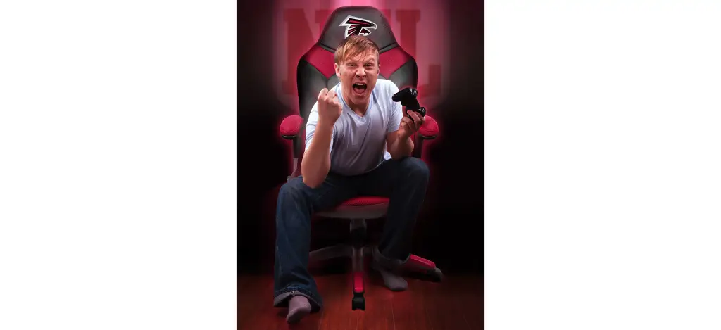 NFL Oversized Gaming Chair by Imperial. The gas lift and butterfly tilt mechanism make it simple to adjust the seat height and backrest for the perfect position. The pouch on the back of the chair offers storage space for your game controller, headphones, or chargers.