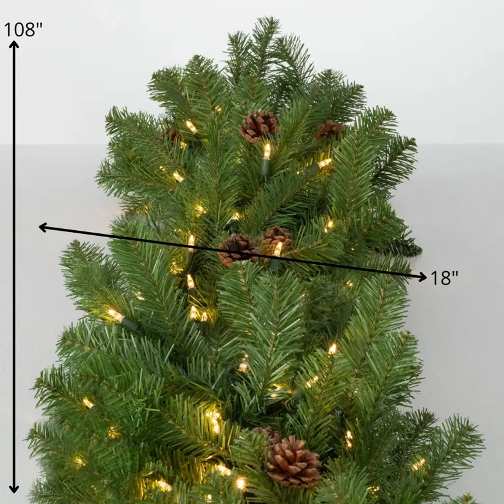 108" Artificial Lit Pine And Cone Christmas Garland, Green