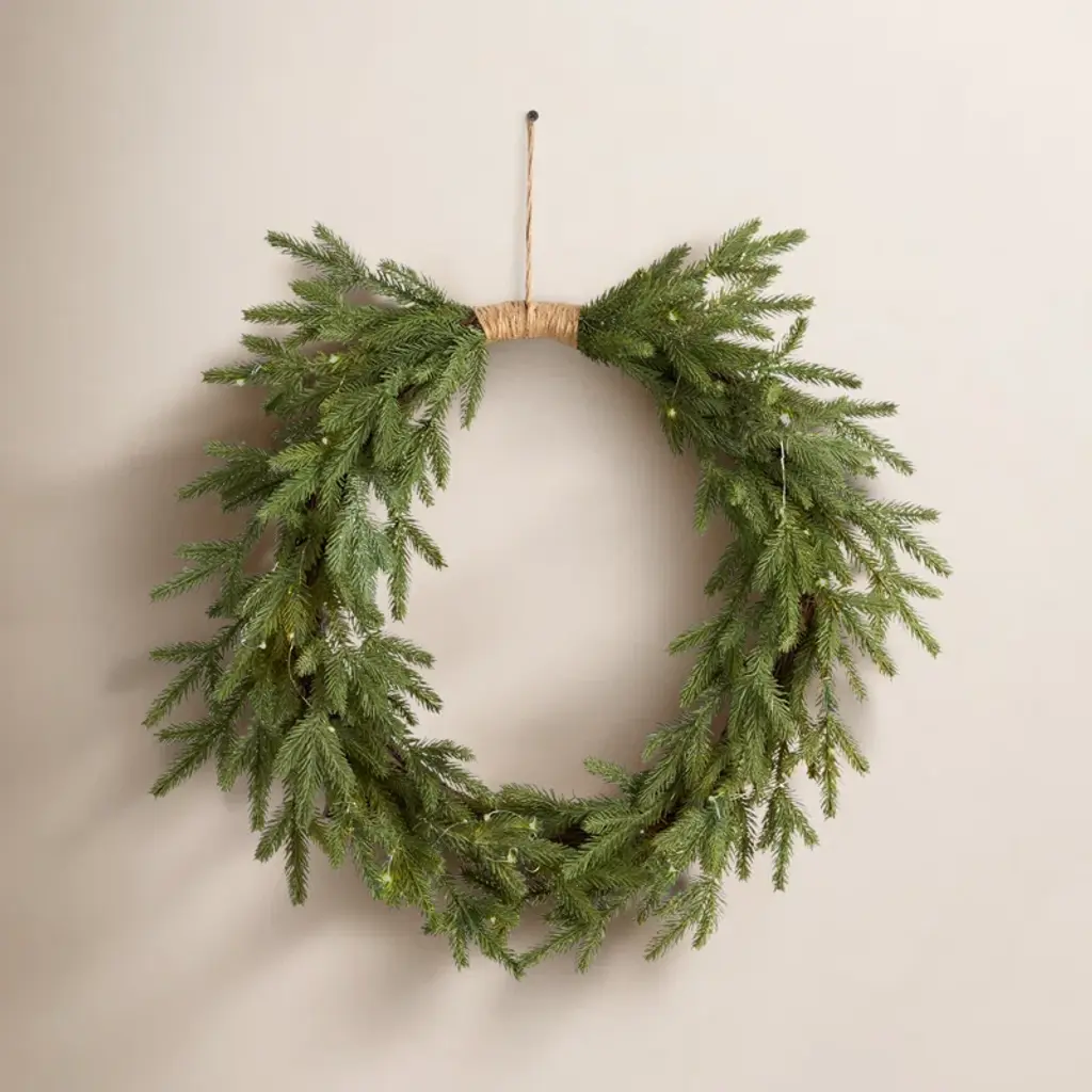 Welcome the magic of winter into your home with this exquisite pre-lit Blue Spruce garland. Designed to mimic the real thing, it adds a cozy touch to your indoor holiday decor. Measuring 9 feet in length, it's perfect for adorning your door, mantel, or wall. The flame-resistant PVC garland features 200 spruce tips and 100 warm white LED lights, creating a delightful ambiance. Please note, this garland requires 6 AA batteries (not included) and is for indoor use only. Enjoy the enchanting glow and festive spirit it brings to your home this season.