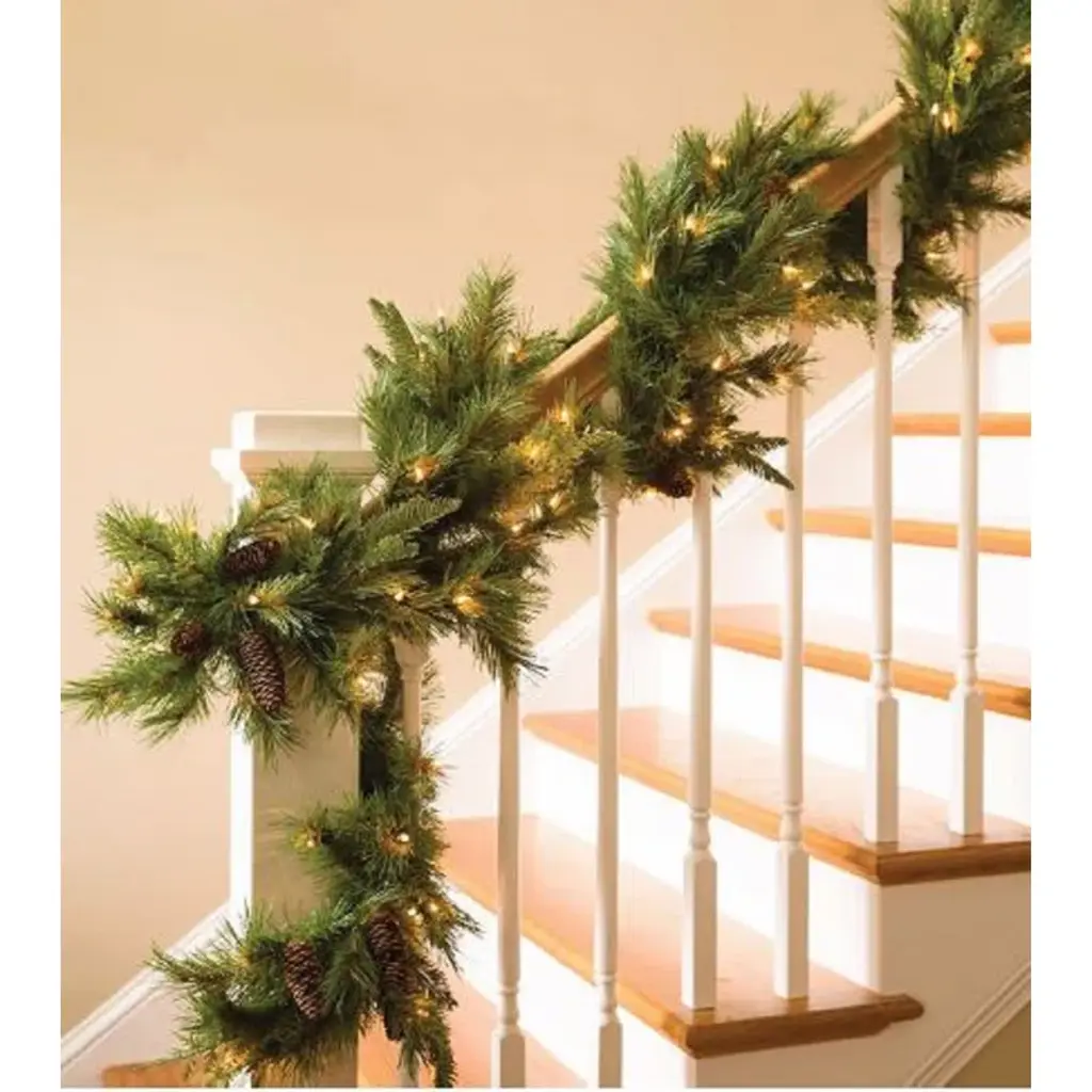 9' Mixed Cedar Garland with 100 Incandescent Lights Make Decorating Easy: The Plug-In Pre-Lit Indoor/Outdoor Mixed Cedar 9' garland comes fluffed and made from a commercial-grade lifelike PVC and PE mix. It is adorned with 100 warm white incandescent bulbs and real pinecones. The mixed cedar garland is great for decorating mantles, windows, doors, light posts, pillars, mailboxes, and more. For More Mixed Cedar Foliage by Celestial at Home: W100101281 - 6' Mixed Cedar Garland - T5 Mini Lights W005252067 - 9' Mixed Cedar Garland - T5 Mini Lights W005252165 - 30" Mixed Cedar Wreath - T5 Mini Lights W002079336 - 30" Mixed Cedar Wreath with Raspberry Lights W008286842 - 6' Mixed Cedar Garland with Raspberry Lights Another great quality item by Celestial at Home!
