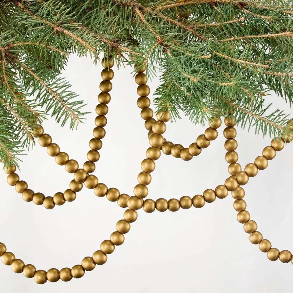 Make your holiday tree sparkle with this Brass Bead Garland from Hearth & Hand™ with Magnolia. Made of wood, this holiday garland features wooden beads in brass finish for a shiny look. Suitable for indoor use only, this 144-inch garland comes with two loops for easy hanging. Show your creativity and transform the holiday tree into a stunning centerpiece for festive photos.Hearth & Hand™ with Magnolia: Gather • Create • Enjoy