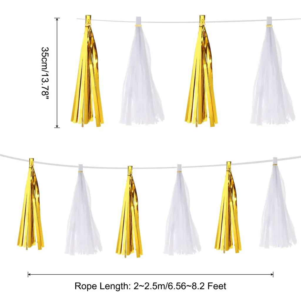 What is this?This tassel garland banner is mainly used for party decoration, you can hang or stick these decorative ribbons on the wall, window, door or shelf to add a different atmosphere to your party, mainly used for birthdays, weddings, Christmas, Easter, masquerade, graduation party and other partiesWhat will I get?Material: PaperColor: Light RedRope Length: 2~2.5m/6.56~8.2 FeetTassel Length:35cm / 13.78 inchPackage content:20 Pcs x Tissue Paper TasselsIs there any advantage of the product?1. This tassel garland banner is made of paper, not easy to break and can be reused. When the party is over, just take it off and fold it back.2. This tissue paper has tassel design, hanging at the party scene, can add a different sense of atmosphere and add a variety of decorations to your party.3. These party tassels are very easy to use, the rope is strong, even if you hang it outdoors, it will not fall off easily, you can hang it on any decorative place you wantHow to use it?String the tassel paper on rope,and hang the ends of the string where you want to decorationWhat should I notice?Tips: please confirm the length before you buy.