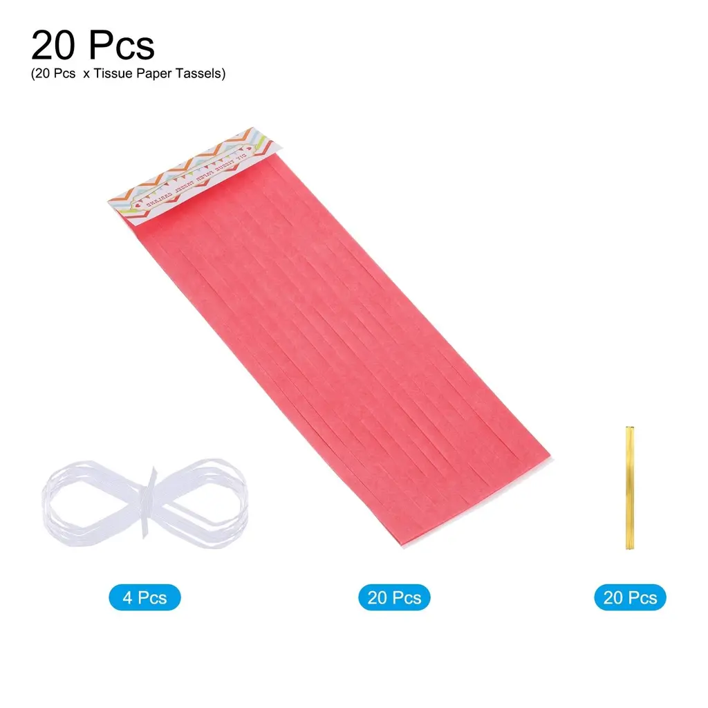 What is this?This tassel garland banner is mainly used for party decoration, you can hang or stick these decorative ribbons on the wall, window, door or shelf to add a different atmosphere to your party, mainly used for birthdays, weddings, Christmas, Easter, masquerade, graduation party and other partiesWhat will I get?Material: PaperColor: Light RedRope Length: 2~2.5m/6.56~8.2 FeetTassel Length:35cm / 13.78 inchPackage content:20 Pcs x Tissue Paper TasselsIs there any advantage of the product?1. This tassel garland banner is made of paper, not easy to break and can be reused. When the party is over, just take it off and fold it back.2. This tissue paper has tassel design, hanging at the party scene, can add a different sense of atmosphere and add a variety of decorations to your party.3. These party tassels are very easy to use, the rope is strong, even if you hang it outdoors, it will not fall off easily, you can hang it on any decorative place you wantHow to use it?String the tassel paper on rope,and hang the ends of the string where you want to decorationWhat should I notice?Tips: please confirm the length before you buy.