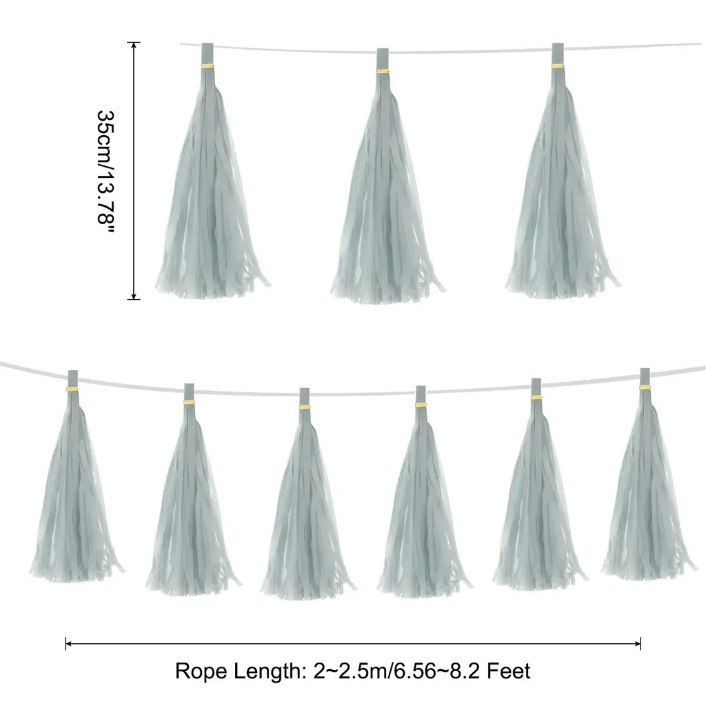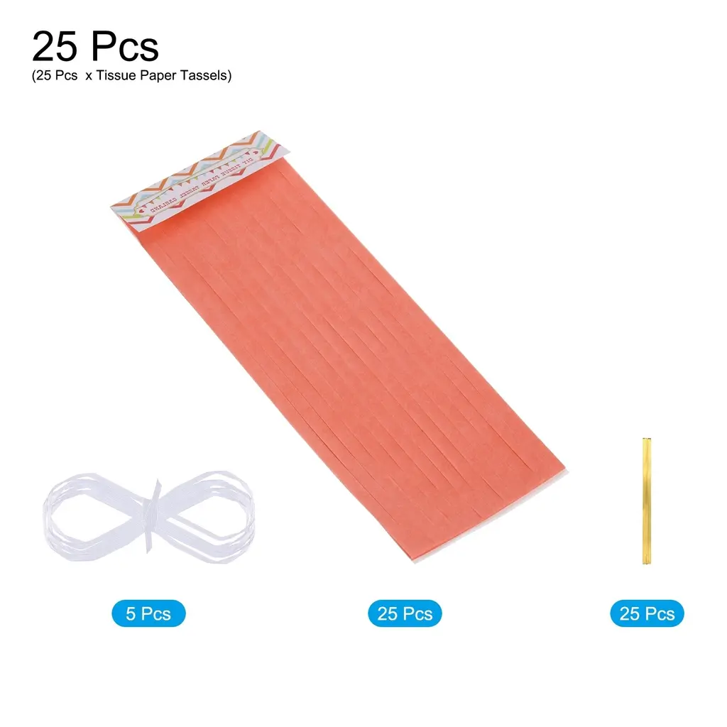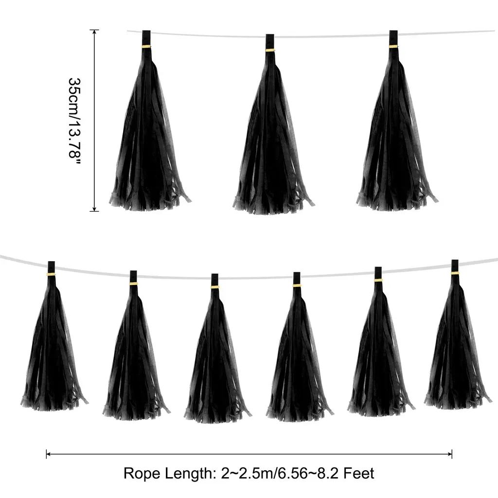What is this?This tassel garland banner is mainly used for party decoration, you can hang or stick these decorative ribbons on the wall, window, door or shelf to add a different atmosphere to your party, mainly used for birthdays, weddings, Christmas, Easter, masquerade, graduation party and other partiesWhat will I get?Material: PaperColor: OrangeRope Length: 2~2.5m/6.56~8.2 FeetTassel Length:35cm / 13.78 inchPackage content:20 Pcs x Tissue Paper TasselsIs there any advantage of the product?1. This tassel garland banner is made of paper, not easy to break and can be reused. When the party is over, just take it off and fold it back.2. This tissue paper has tassel design, hanging at the party scene, can add a different sense of atmosphere and add a variety of decorations to your party.3. These party tassels are very easy to use, the rope is strong, even if you hang it outdoors, it will not fall off easily, you can hang it on any decorative place you wantHow to use it?String the tassel paper on rope,and hang the ends of the string where you want to decorationWhat should I notice?Tips: please confirm the length before you buy.