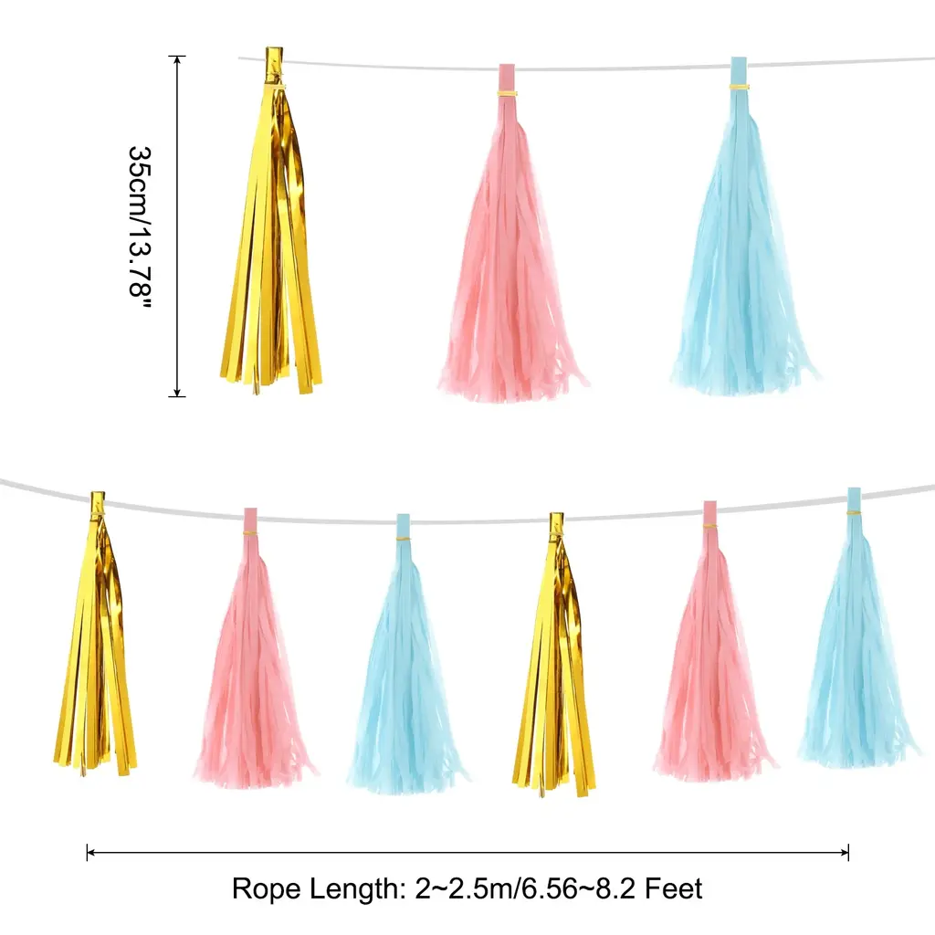 30pcs Tassel Garland Banner With Rope - Light Blue,light Pink,gold