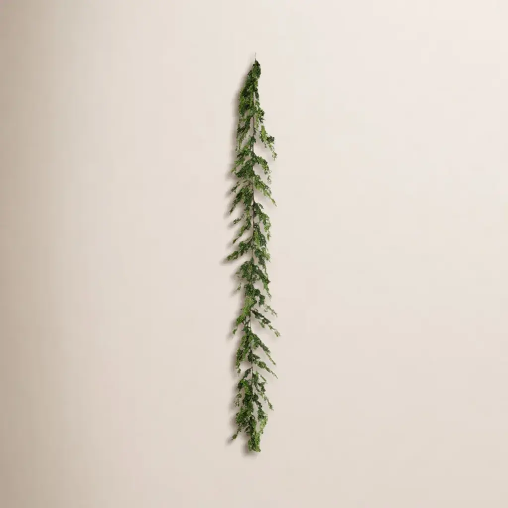 Impress Santa this Christmas with a 4' Iced Garden Norfolk Pine Garland! Hangover doors, mirrors, and mantles try displayed on tables as a centerpiece bringing nature indoors. Crafted of natural touch plastic, without wires the branches cannot be bent or shaped. Suitable for indoor and outdoor use. Wipes clean with a damp cloth, product is shipped compressed and may require gentle shaping and primping to match the image shown.