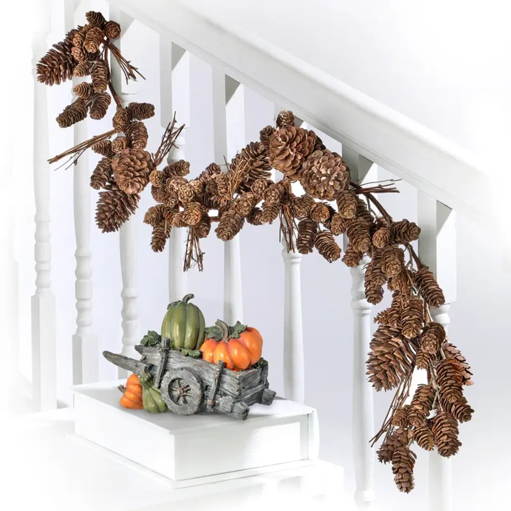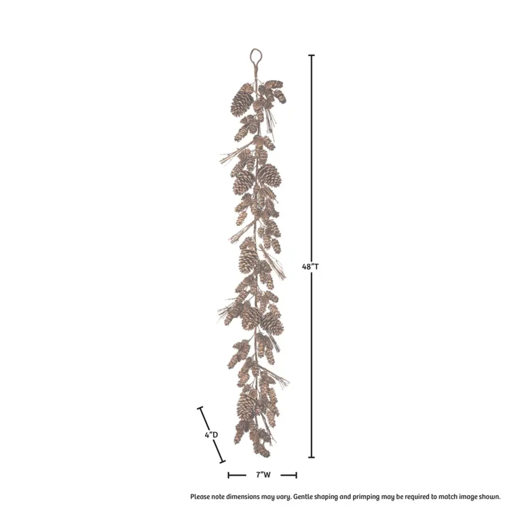 Garland is always a timeless and beautiful addition at Christmas time. This Plastic Natural Look Mix Cone Twig Garland Crafted of plastic is definitely pleasing to the eye. The perfect sparkle to your fireplace or front porch this season. For cleaning simply dust with a damp cloth or blow with canned air. This product is shipped compressed, gentle shaping and primping may be required to match the image shown.