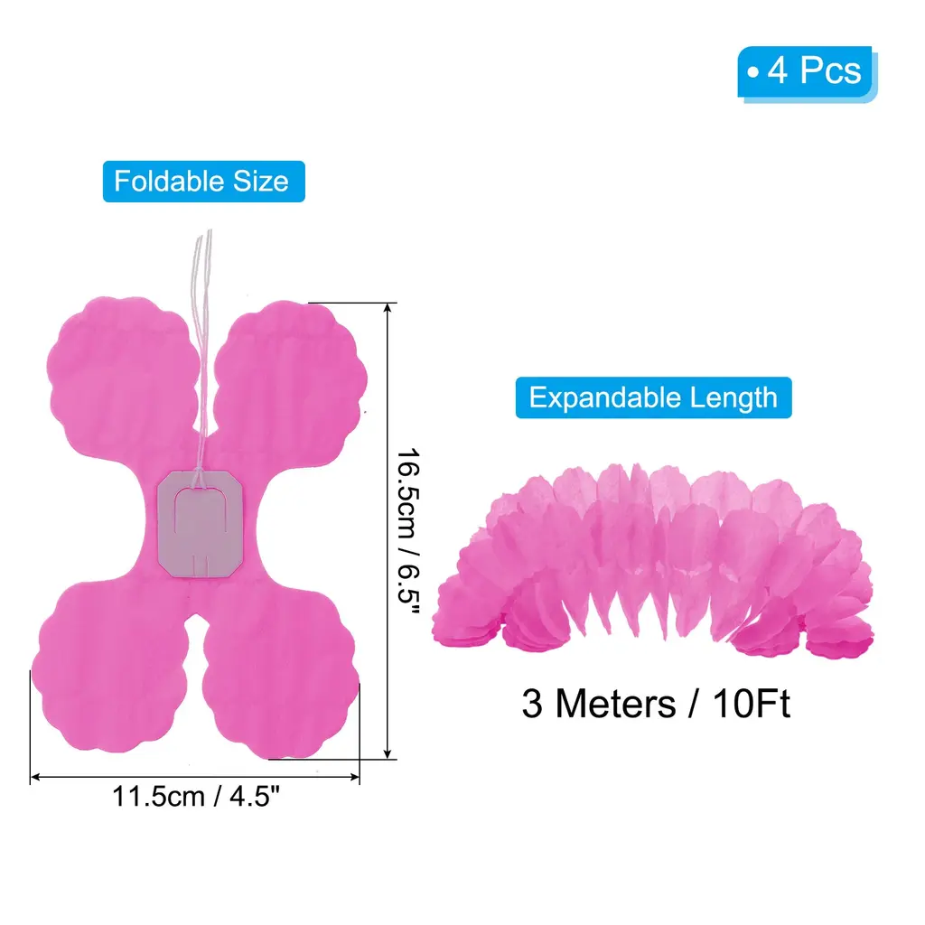 Without losing simplicity and sophistication, our paper garland decorations provide a stylish and artistic decorative project. Widely used at party occasions, such as birthdays, weddings, bridal showers, theme parties, family gatherings, bachelorette parties, engagement parties, new years' parties, Christmas parties, anniversary, graduations, garden decorations, room decor, Easter basket stuffer, etc.SpecificationMaterial: PaperShape: Four-LeafColor: RedEach Folded Size: 16.5 x 11.5 cm/ 0.54 x 0.38inch (LxW)Each Unfolded Length: 3Meters/10FtPackage List: 4Pcs x Tissue Paper GarlandAdvantageOur paper garland is made of quality paper, with a foldable design, can be reusable and easily stored. The connection points are designed to be strong and not easy to break for durable use. Easy to hang, slightly pull the rope on both sides of the garland, you can hang it anywhere you want to decorate. Distinctive design of our paper garland makes decorations more stand to add party atmosphere.InstructionHang the paper garland from the ceiling, wall, window, door, or branch to create a cheerful party atmosphere. Also, you can DIY them according to your imagination, creating unique handicrafts.NOTEPlease do not be rough when using it and avoid contacting the paper garlands with water.