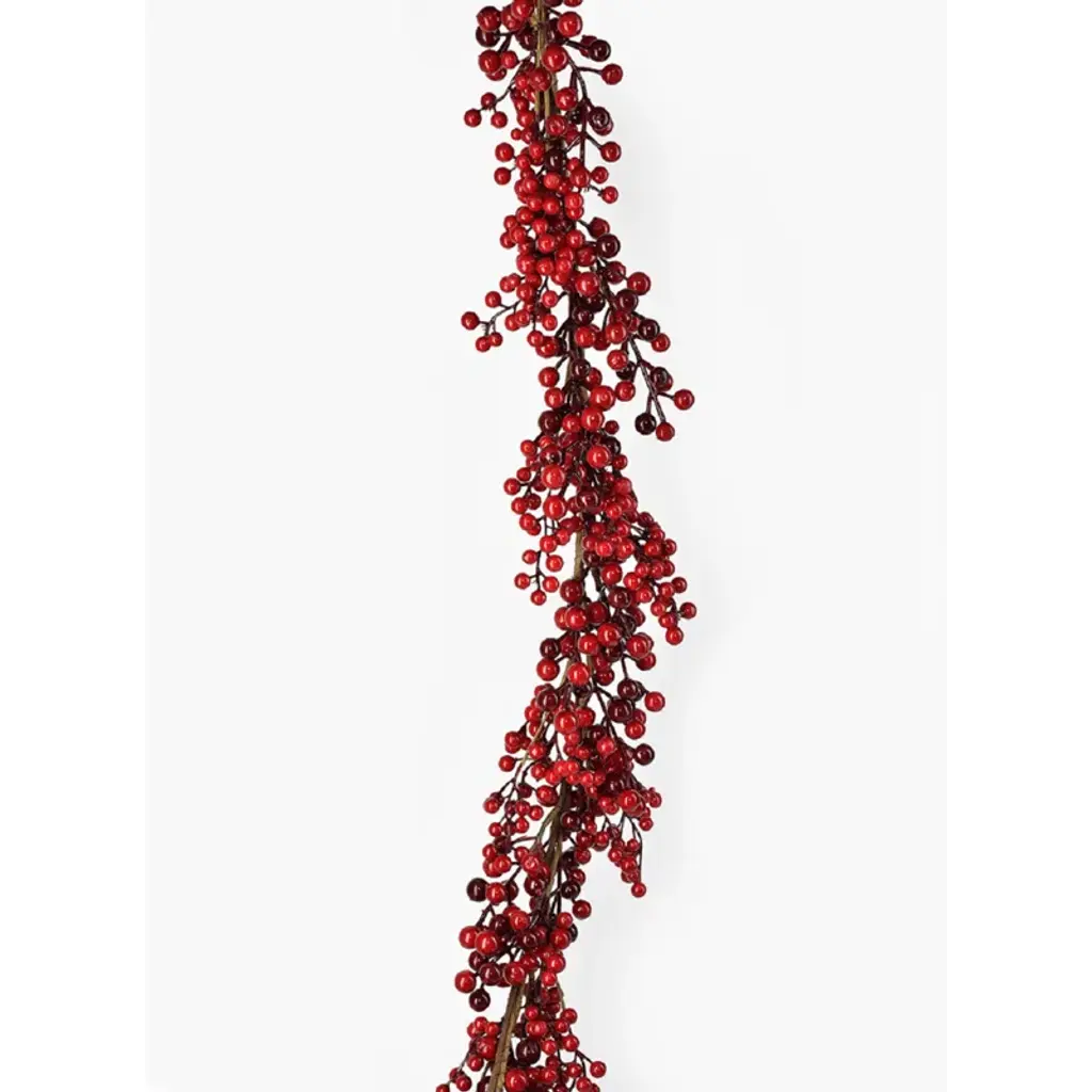 Shiny red berries decorate this garland that would make a wonderful accent in any decorUnlitRecommended for indoor use - if using outdoors place under a covered areaDimensions: 60"H x 6"W x 3.5"DMaterial(s): Plastic/foam