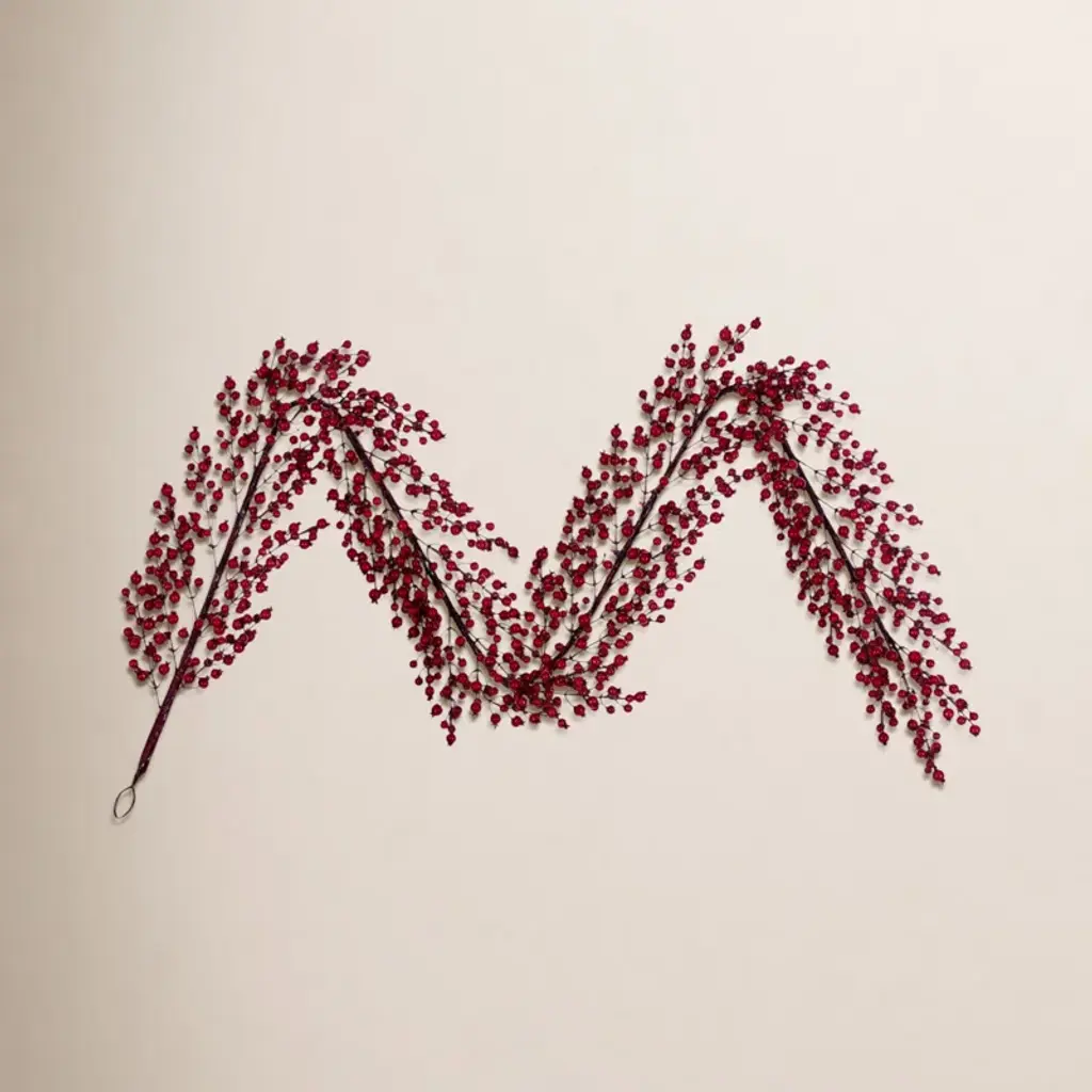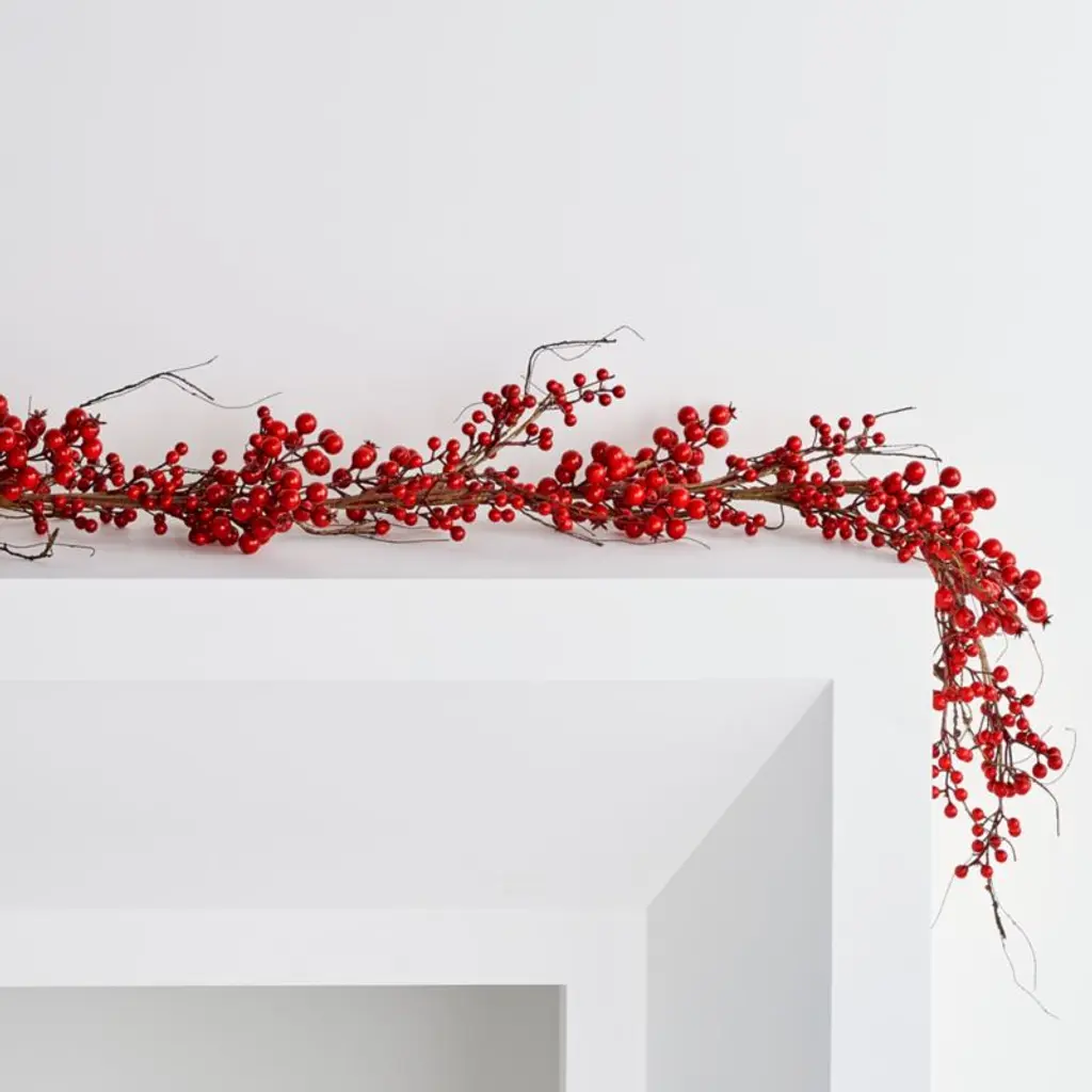 Shiny red berries decorate this garland that would make a wonderful accent in any decorUnlitRecommended for indoor use - if using outdoors place under a covered areaDimensions: 60"H x 6"W x 3.5"DMaterial(s): Plastic/foam