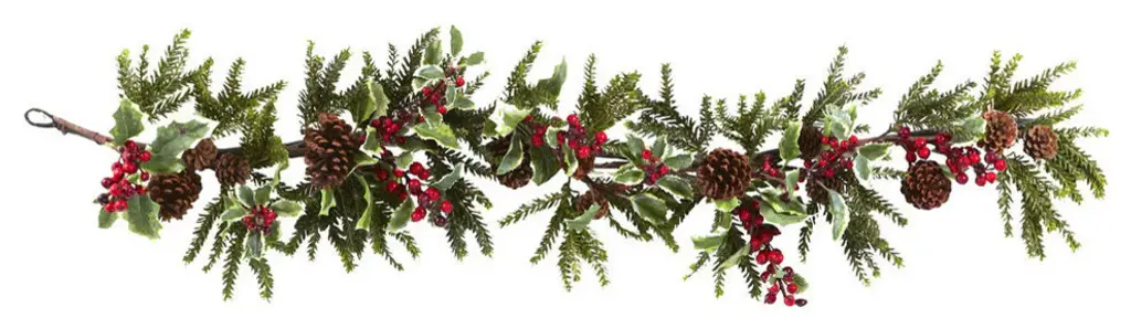 Would you like to add some festive holiday spirit in an instant? Just put up this captivating 54" Holly Berry Garland and you and your guests immediately feel the need to fill out wish lists, wrap gifts, and cook a Turkey! With lush greens, faux pinecones, and colorful berries, this Garland will instantly turn any room into a winter wonderland! Makes a great gift, too!