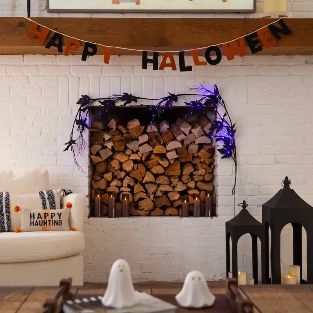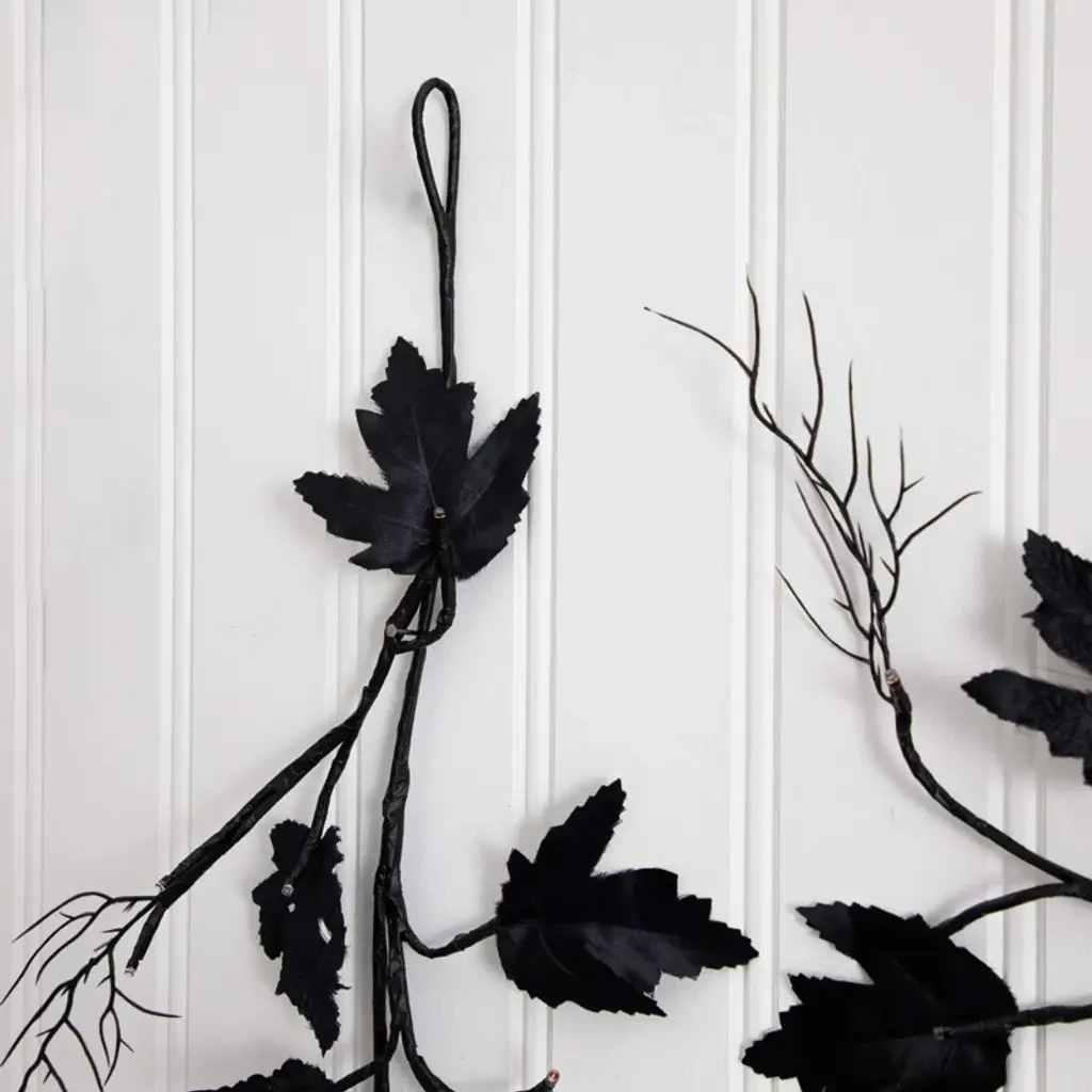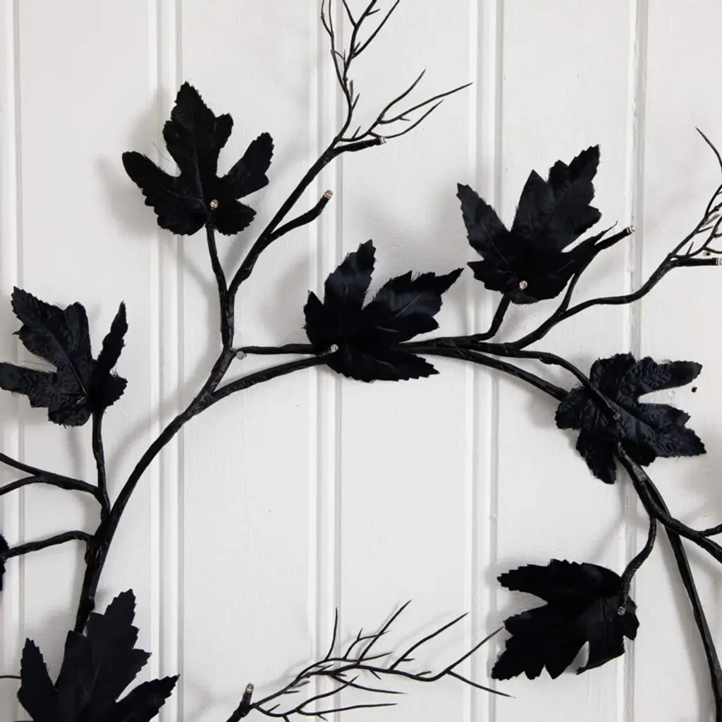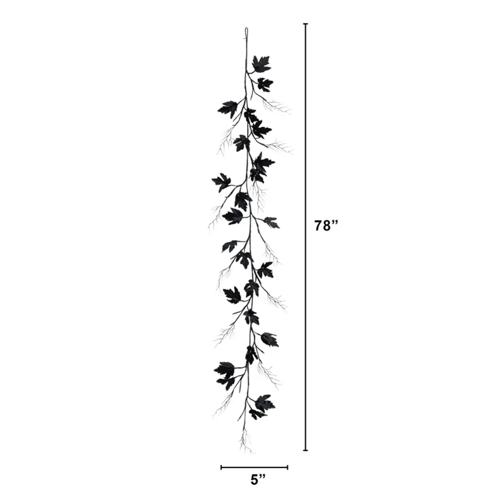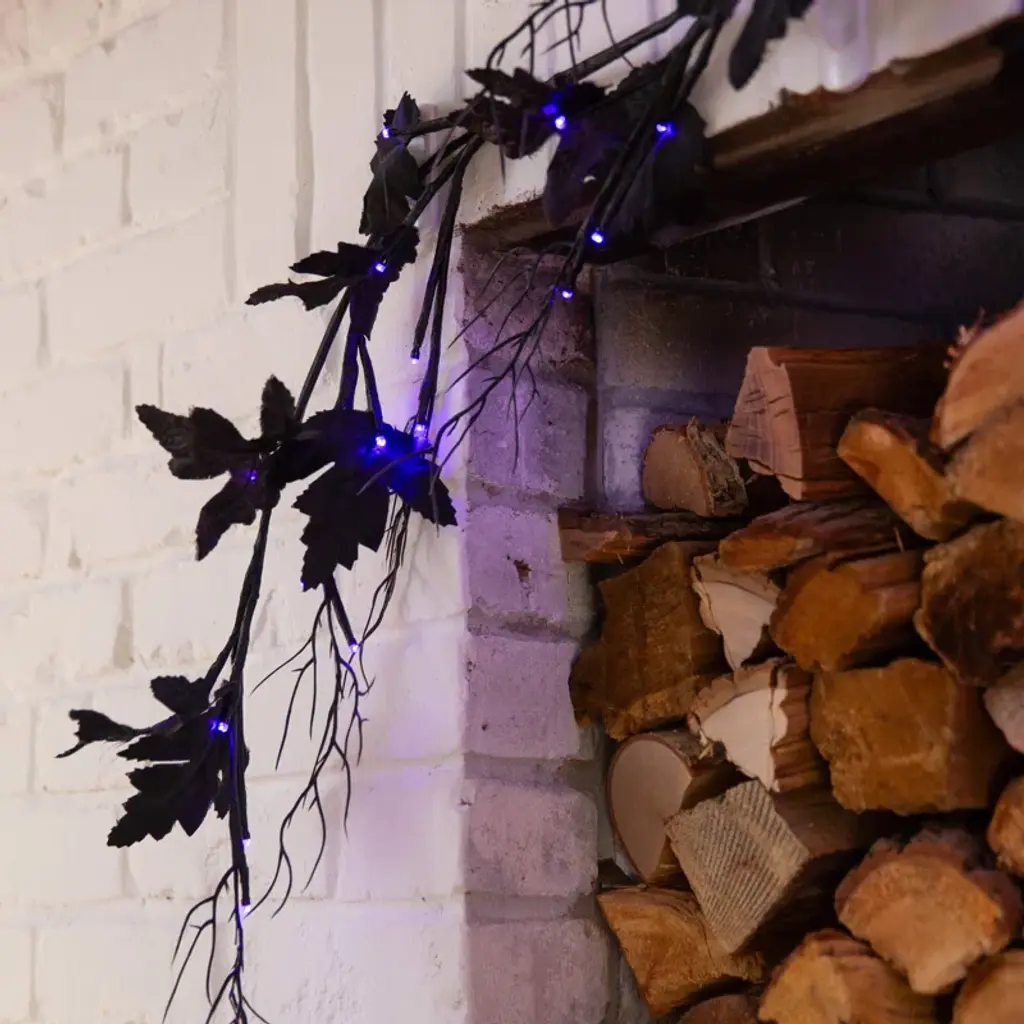 6.5ft. Pre-Lit Artificial Halloween Black Maple Garland With 48 Orange & Purple Led Lights