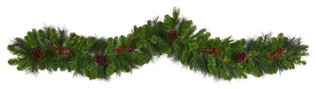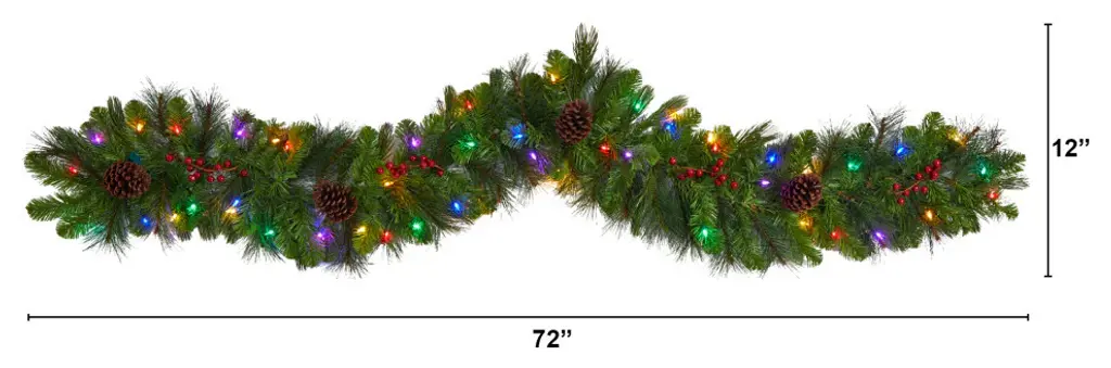 Complete your holiday decor with this artificial winter garland, designed from realistic looking pine foliage in seasonal evergreens, handsomely accented with faux pinecones and sprays of holly berries - all to evoke the Christmas spirit. The 50 multicolored LED lights will illuminate any area gracefully. Reaching 6 long to make decorating stress-free, this artificial garland is great for mantles, counters, or banisters, and would undoubtedly complete a traditional holiday setting for years to come. 6'' Colorado Fir Artificial Christmas Garland with 50 Multicolored LED Lights, Berries and Pinecones