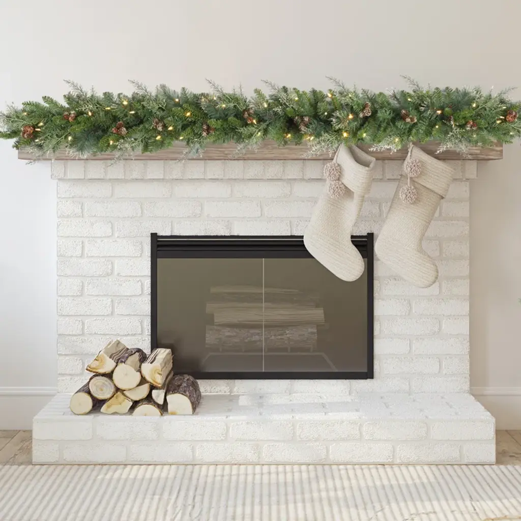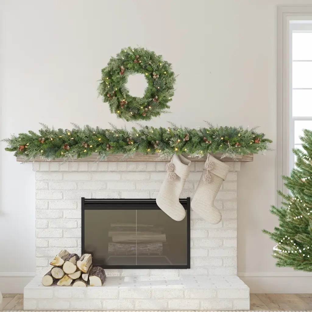 6 Ft. Long Bergen Pine Artificial Garland With Gold Accents Battery-Operated T5 Led Lights