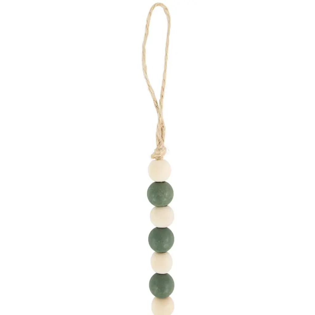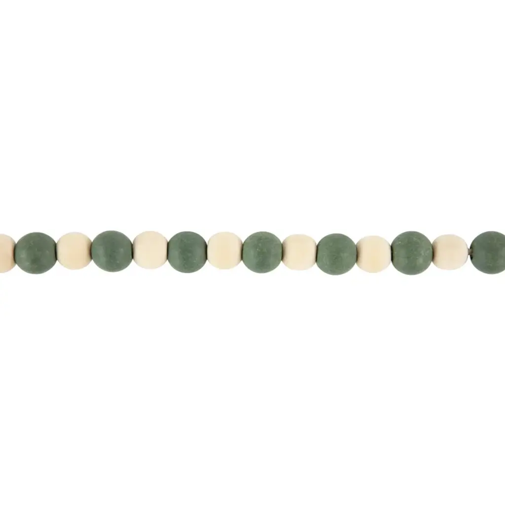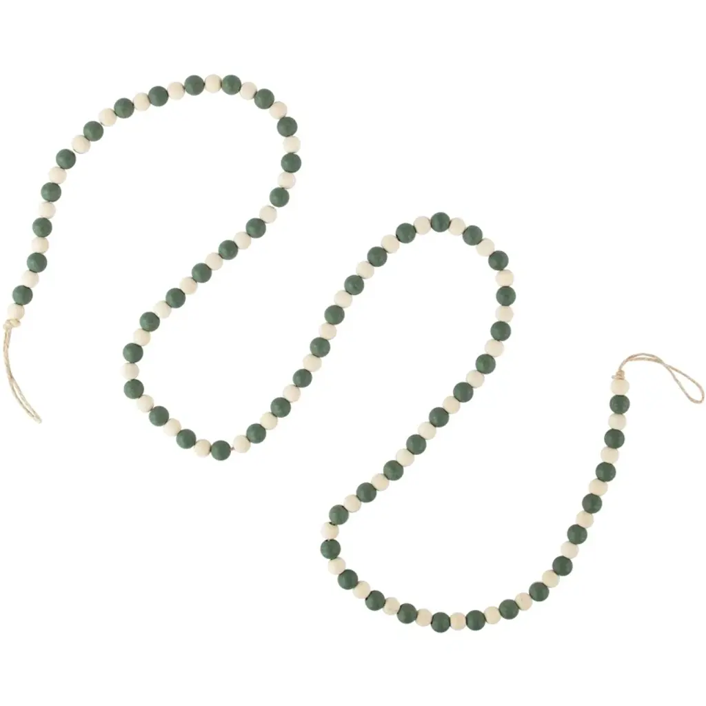Add some natural charm to your holiday decor with this exquisite beaded wooden Christmas garland. Crafted with care this garland features delicate wooden beads in alternating green and ivory tones adding a touch of rustic elegance to your seasonal display. The garland is unlit allowing you to customize your lighting preferences and comes with a durable jute hanging cord for easy and secure placement. Perfect for wrapping around your tree adorning your mantle or adding a festive touch to your walls or doorways this garland is sure to become a cherished part of your holiday tradition for years to come. Product Features: Unlit. Features round green and ivory beads. Perfect for Christmas or everyday decor. Jute loops on each end for easy hanging. Recommended for indoor use only. Dimensions: 6' long x 0.75" wide. Material(s): wood/jute
